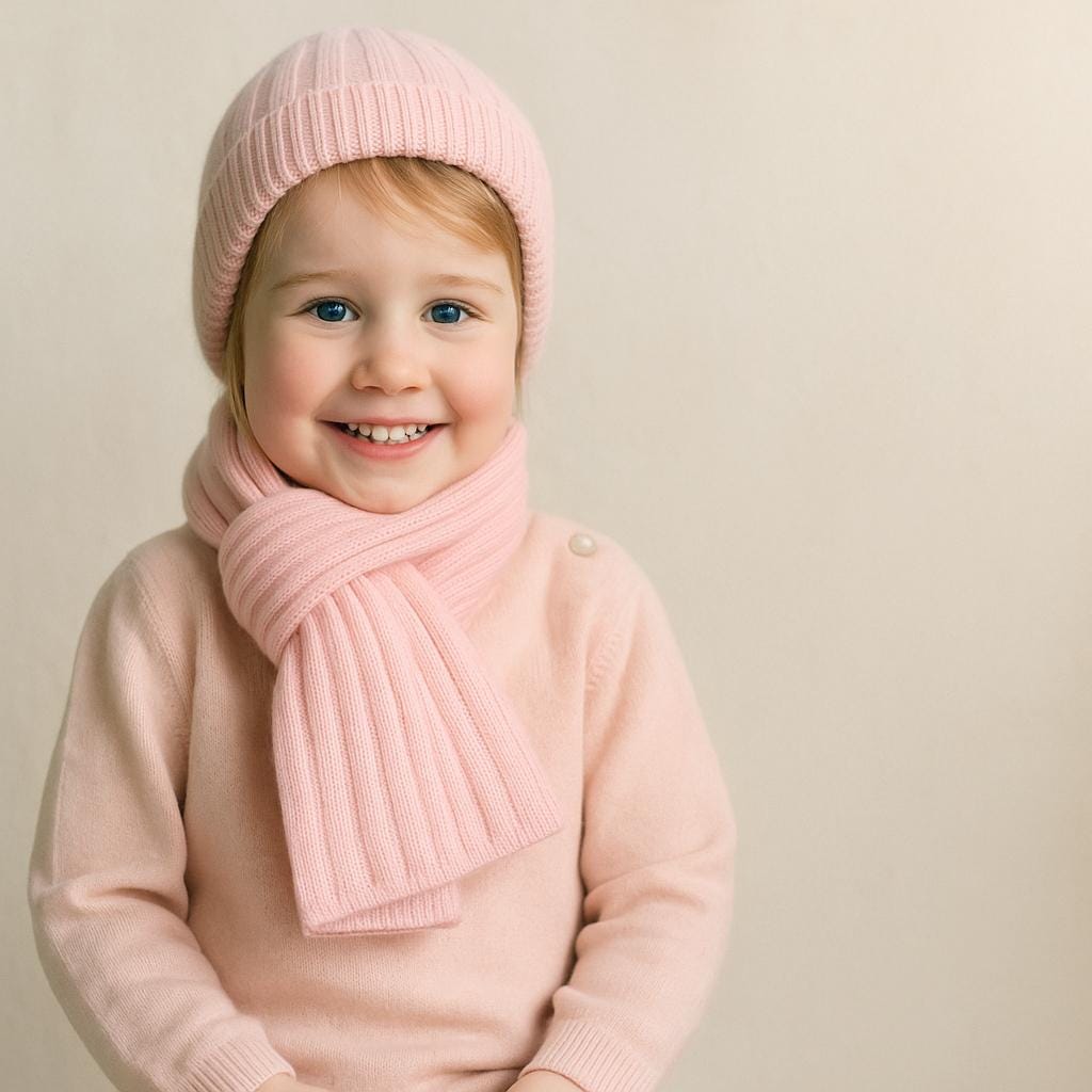 GOTS organic cashmere hat scarf set for children (2-4 years) knitte...