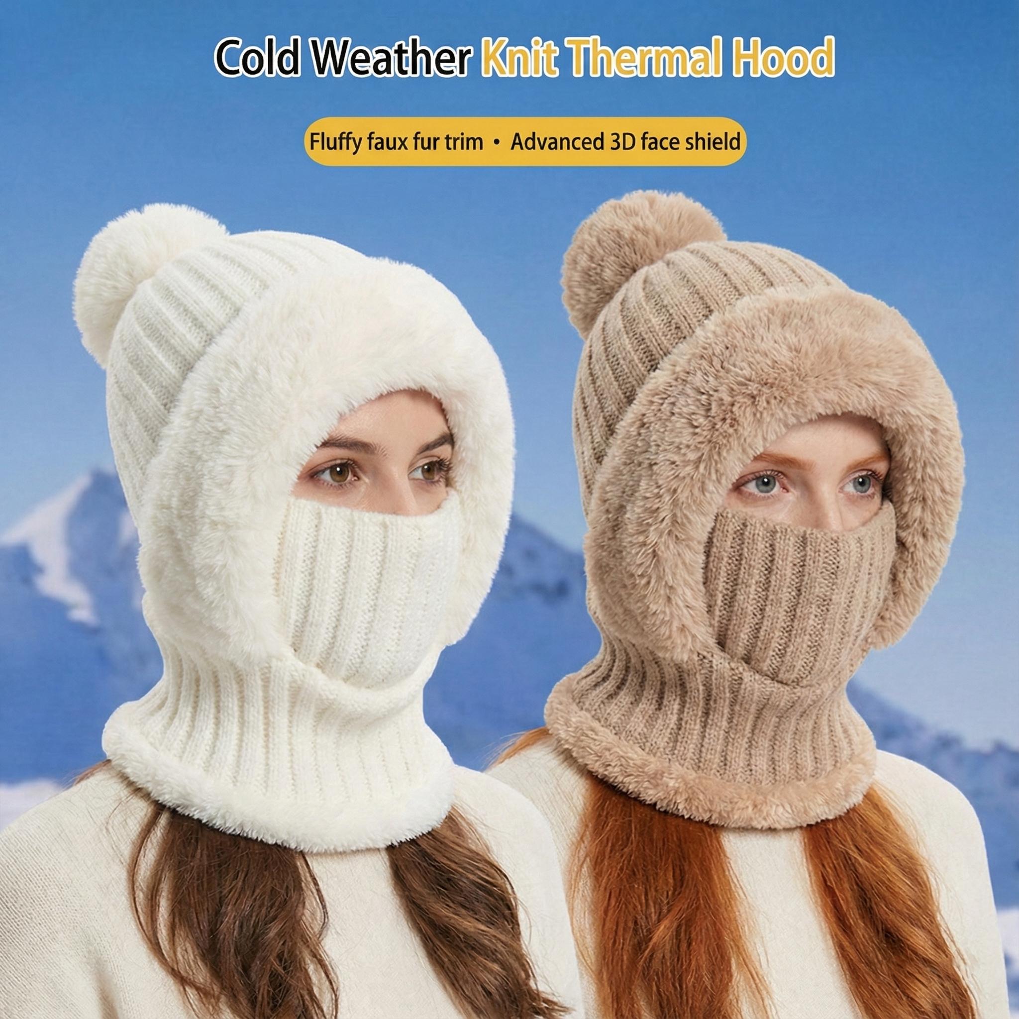 Winter Knit Hood Hat Scarf, Plush Face Cover, Cycling Hiking