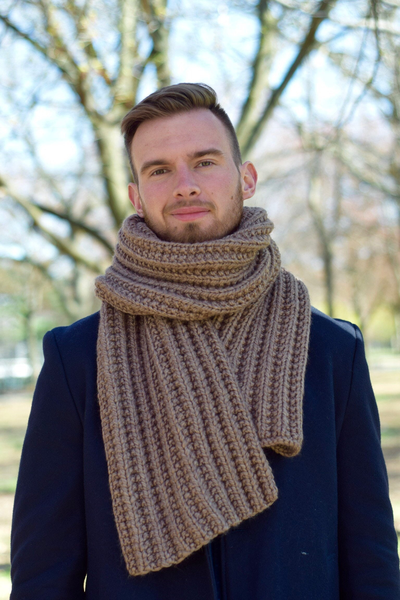 Knit Scarf for Men Wool Chunky Knitted Scarf Unisex Hand Knit Oversized Scarf Long Handmade Knit Sca...