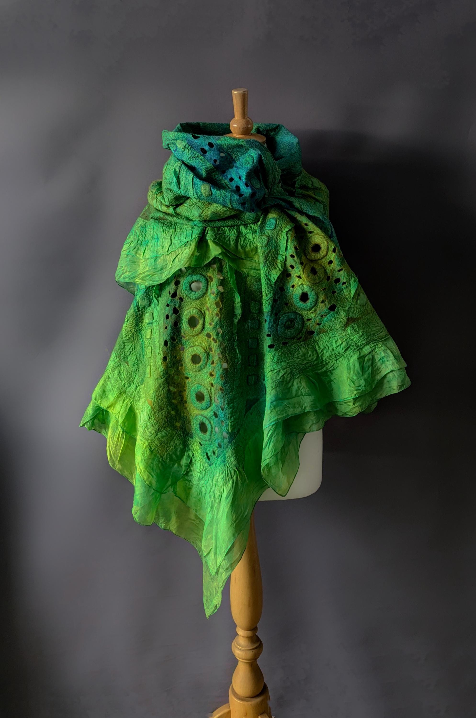 Felted silk scarf, Nuno Felted scarf, wool wrap shawl, felt scarf, ...