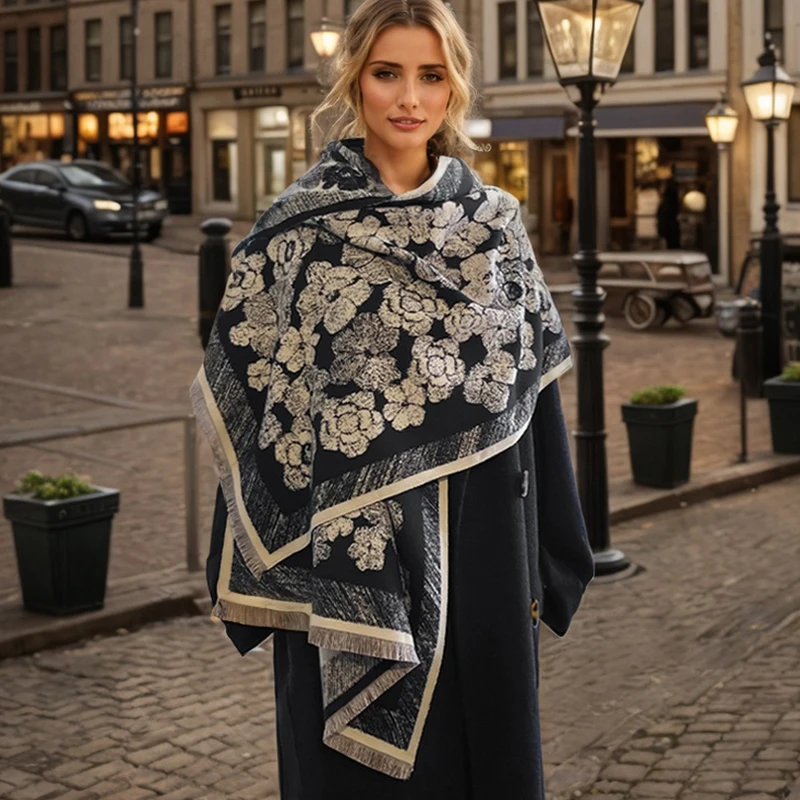 Luxury Brand Two-Sided Jacquard Scarf pashmina Cashmere Soft Warm Fringe Pashmina Shawl Winter Coldp...
