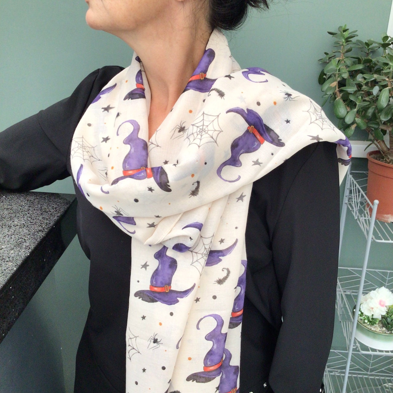Witches hat scarf Hand printed in the UK, our exclusive range of Halloween scarves are presented in ...