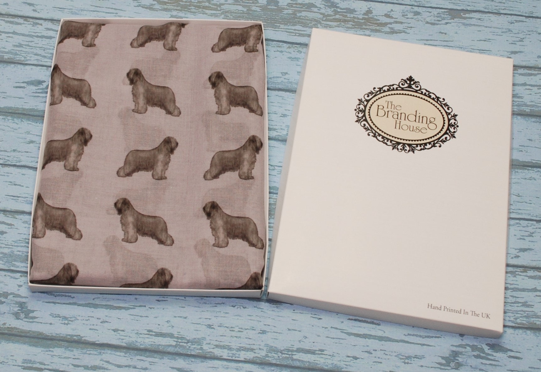 Briard scarf Hand printed in the UK, our exclusive range of dog breed scarves are presented in a gif...