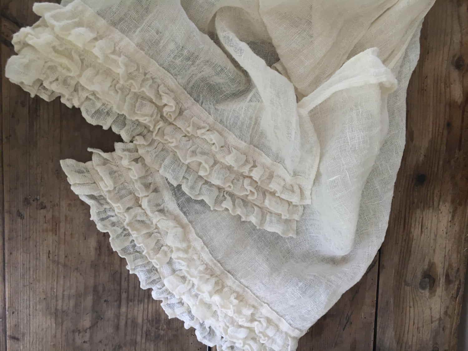White Scarf, Linen Scarf With Ruffle, Wraps Shawl, Womens Shawl, Li...