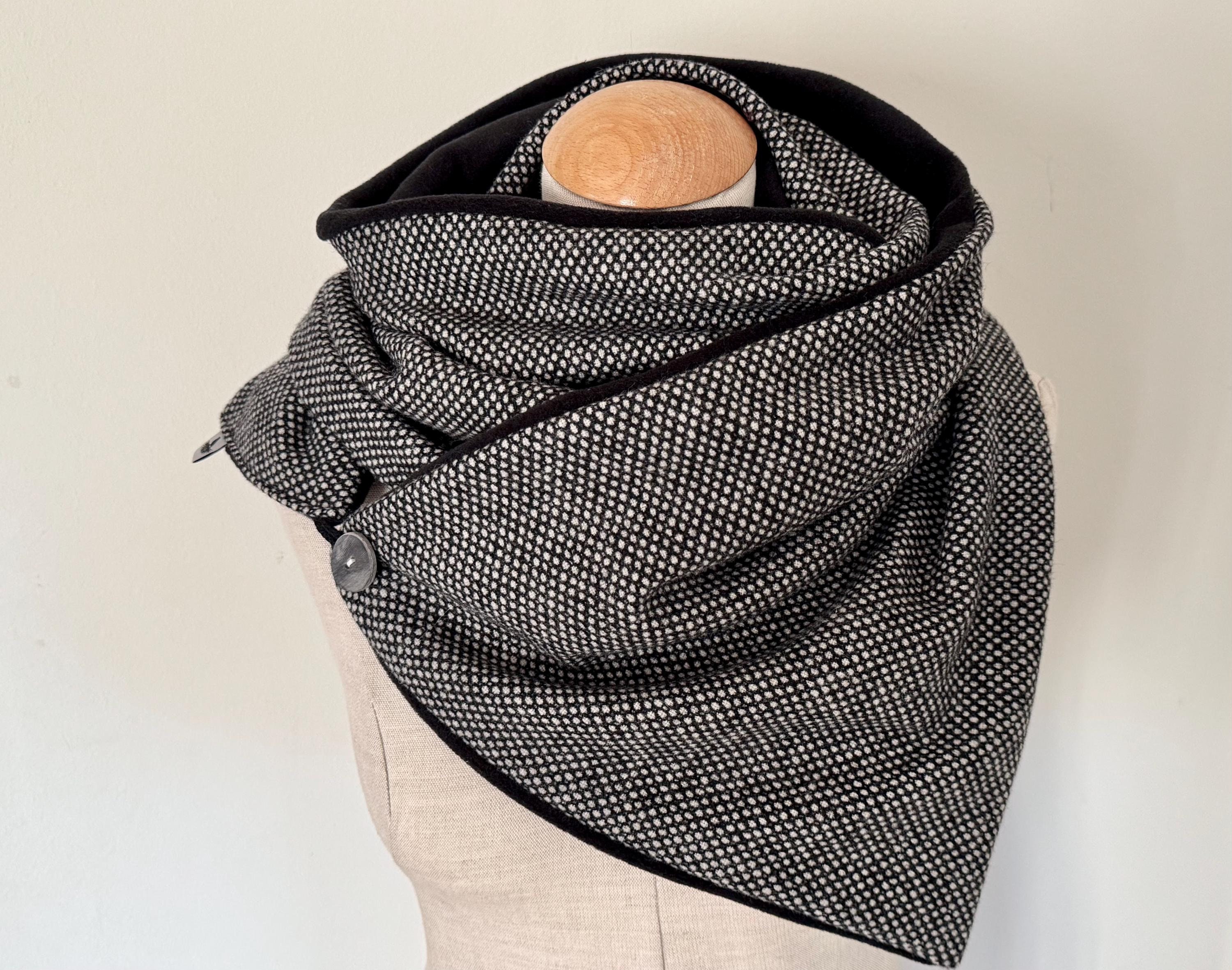 Wrap scarf, wool, button scarf, wrap, triangular scarf, fleece, grey scarf, black wool scarf, winter...