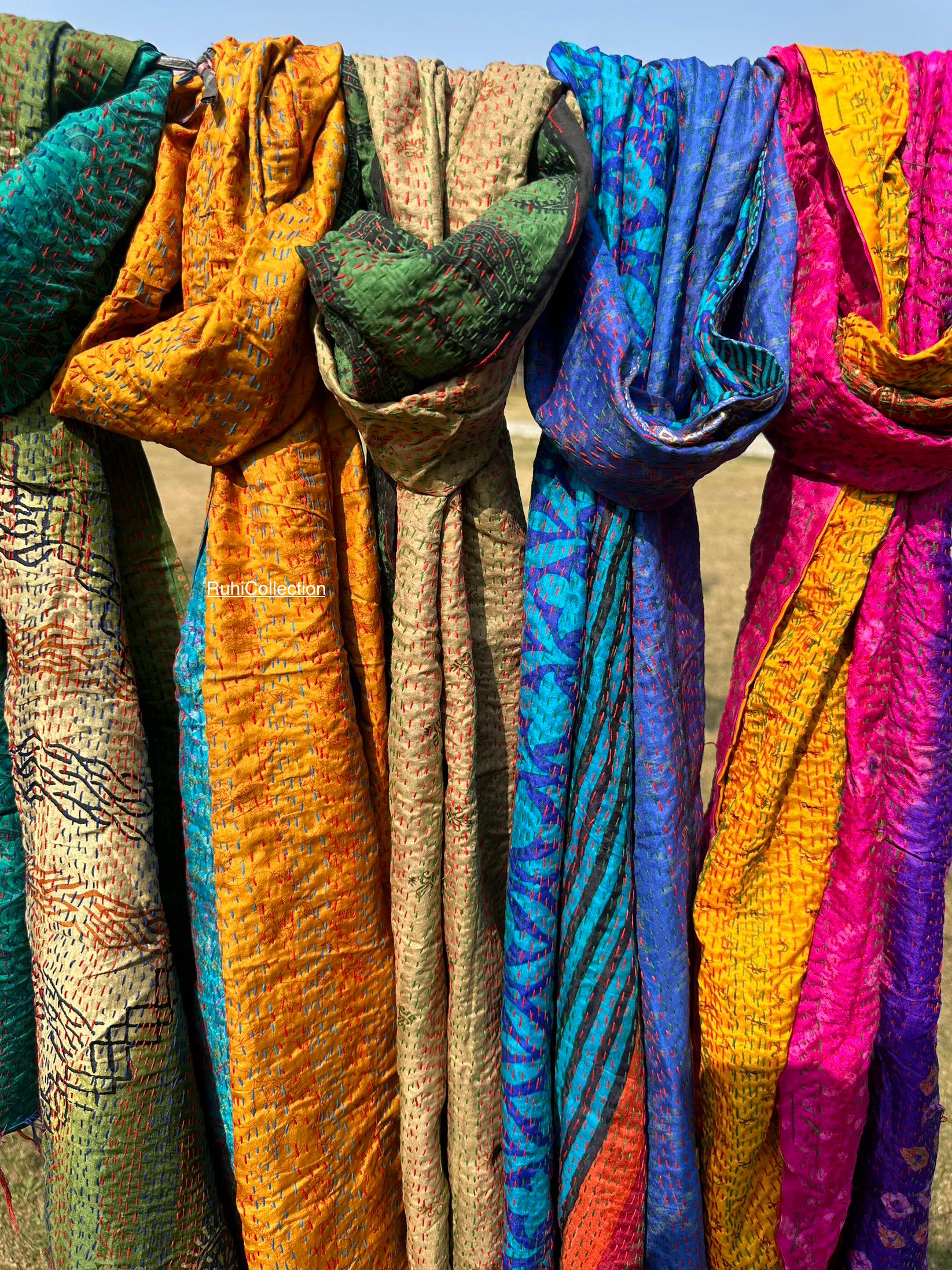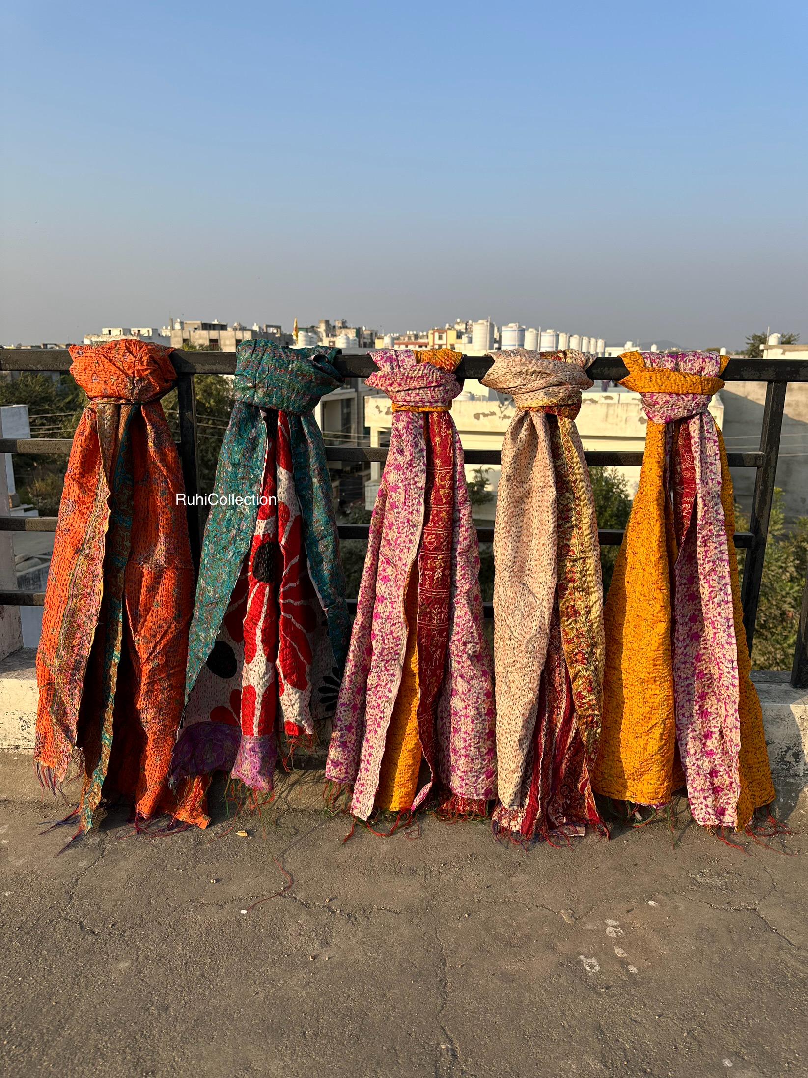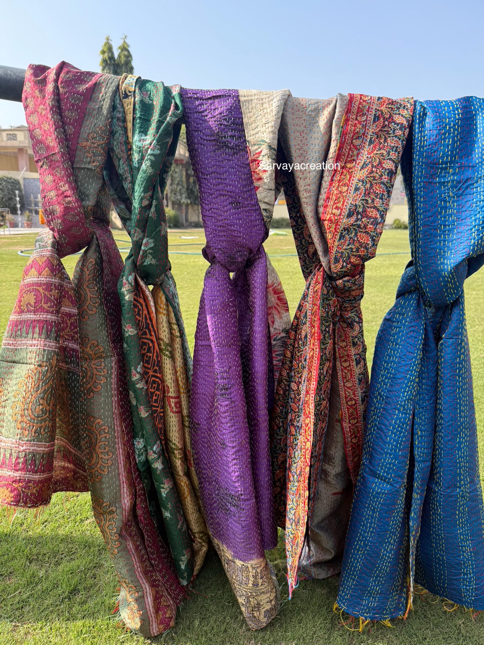 Vintage Reversible Kantha Silk Scarf | Handmade Dupatta, Stole & Shawl | SarvayaCreation Add tim...