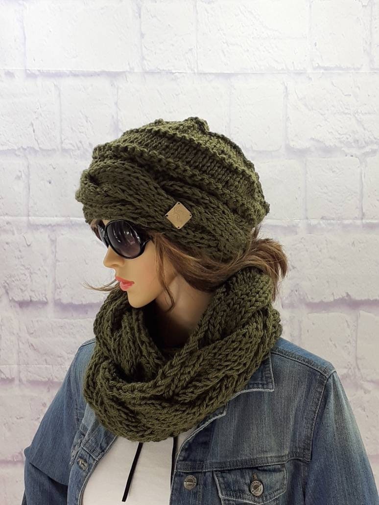 Cowl and Hat Set, Knitted Set Women, Chunky Scarf, Cable Knit Beani...