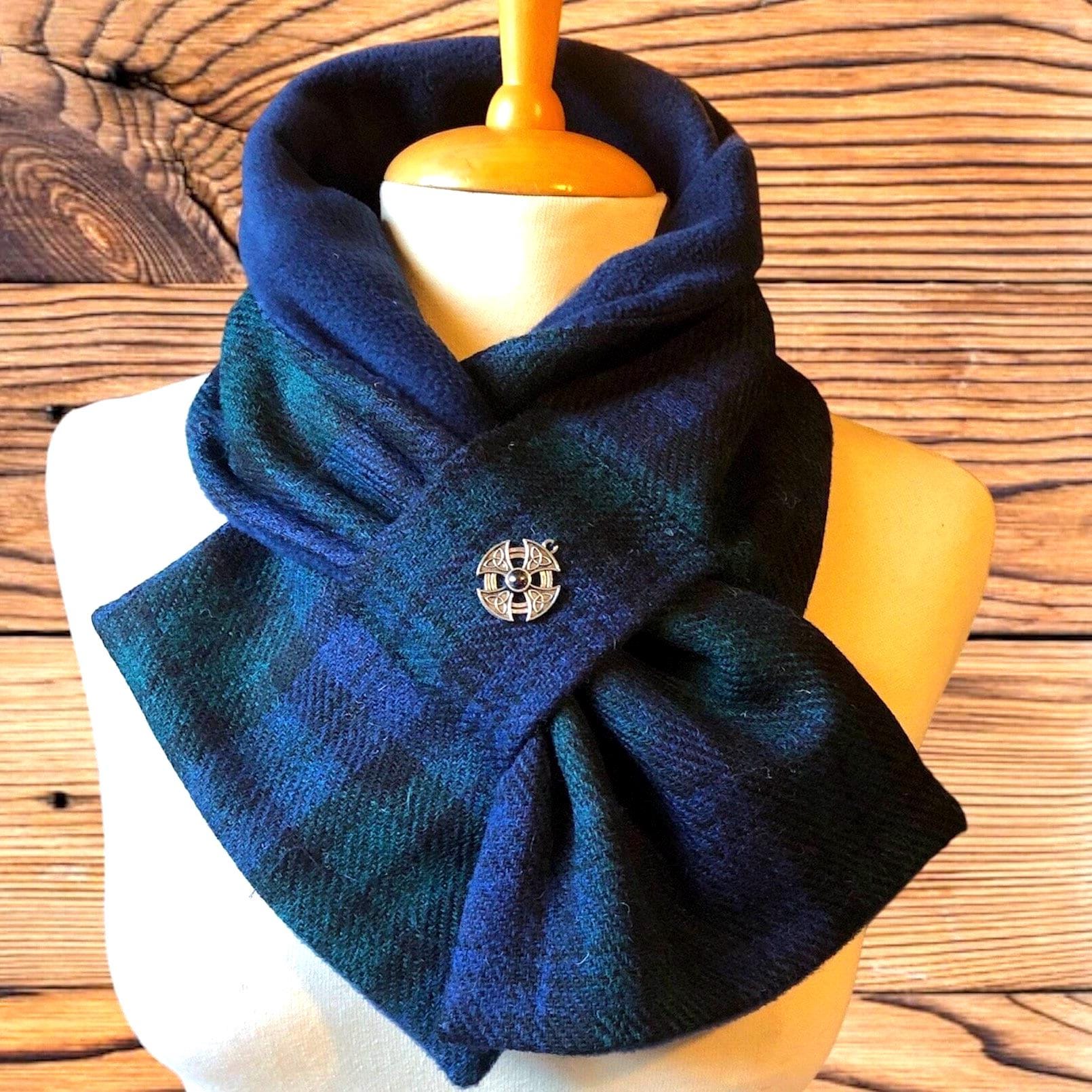 Harris Tweed Scottish 100% wool tweed Scarf. Cowl. Neck warmer. Bla...