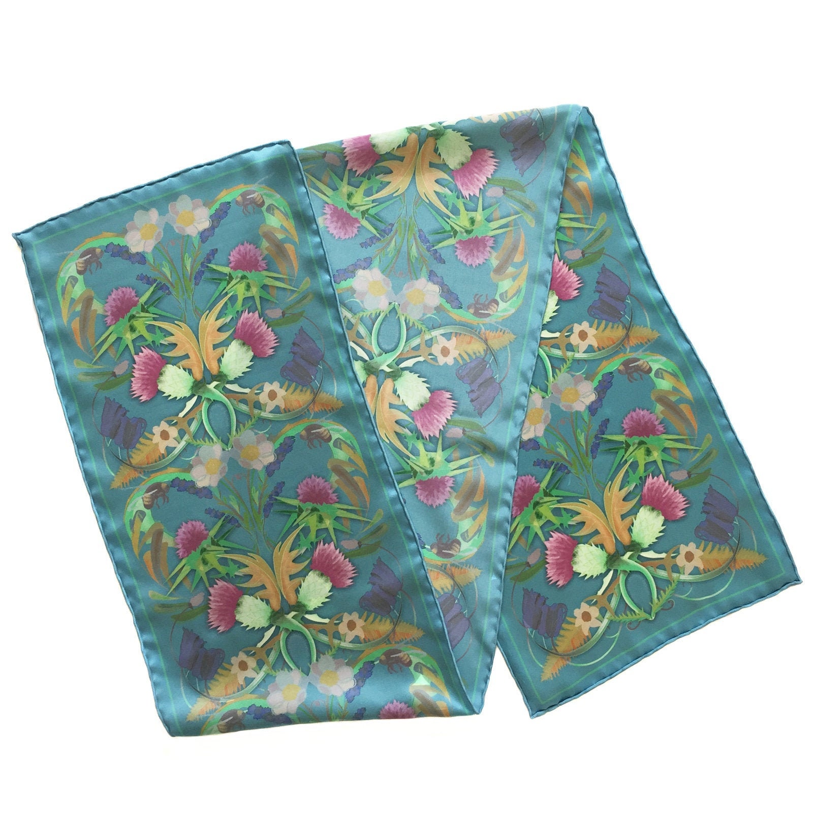 Scottish Thistle Blue Silk Scarf Inspired by Artist William Morris ...