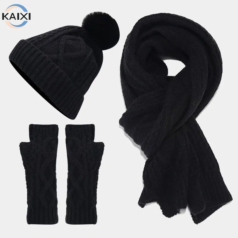Wholesale Custom Logo Thermal Autumn Winter Warm Knitted Hat Set Pi...