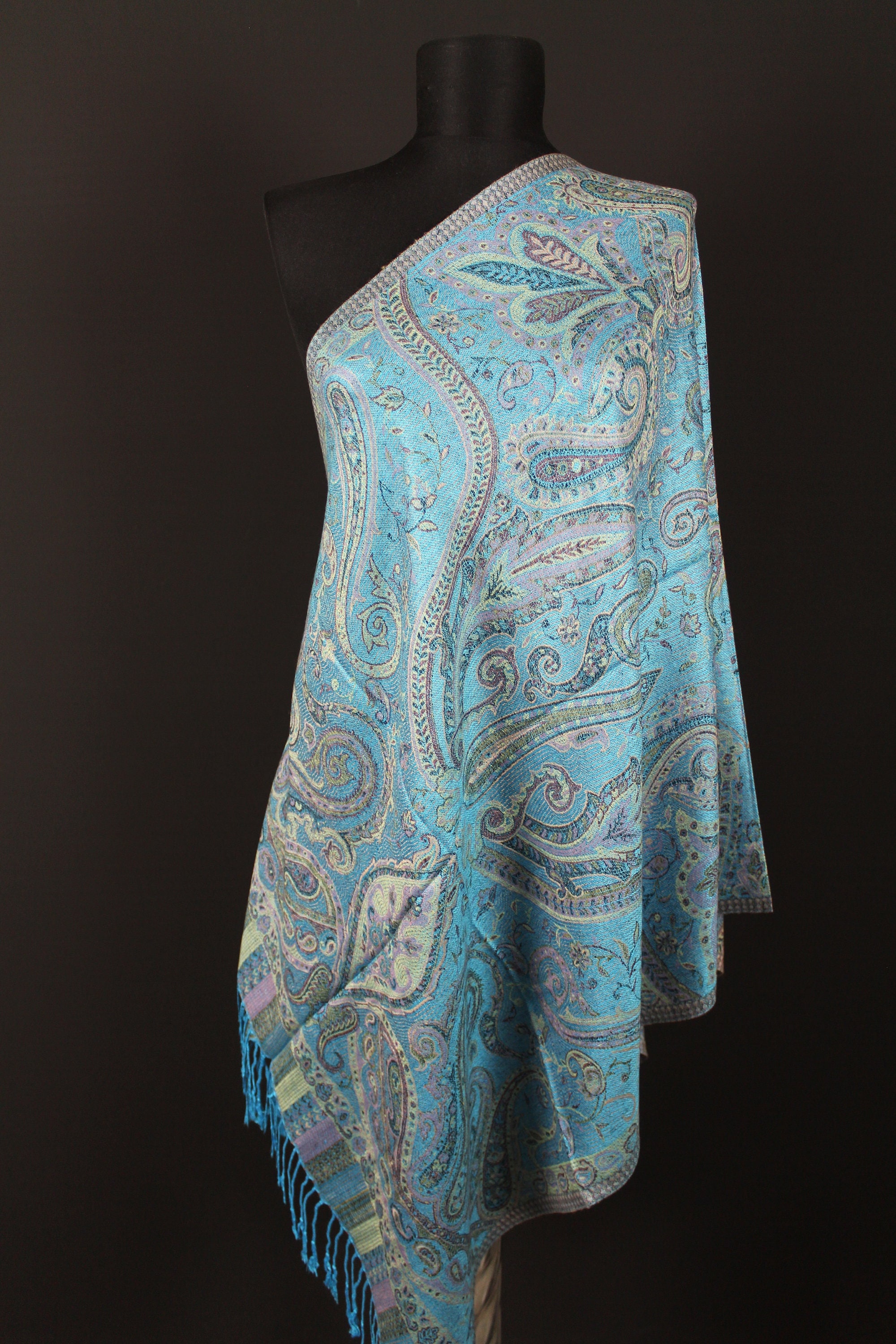 Turquoise Pashmina Shawl, Pashmina Scarf, Woman's Scarf, Scarves, W...