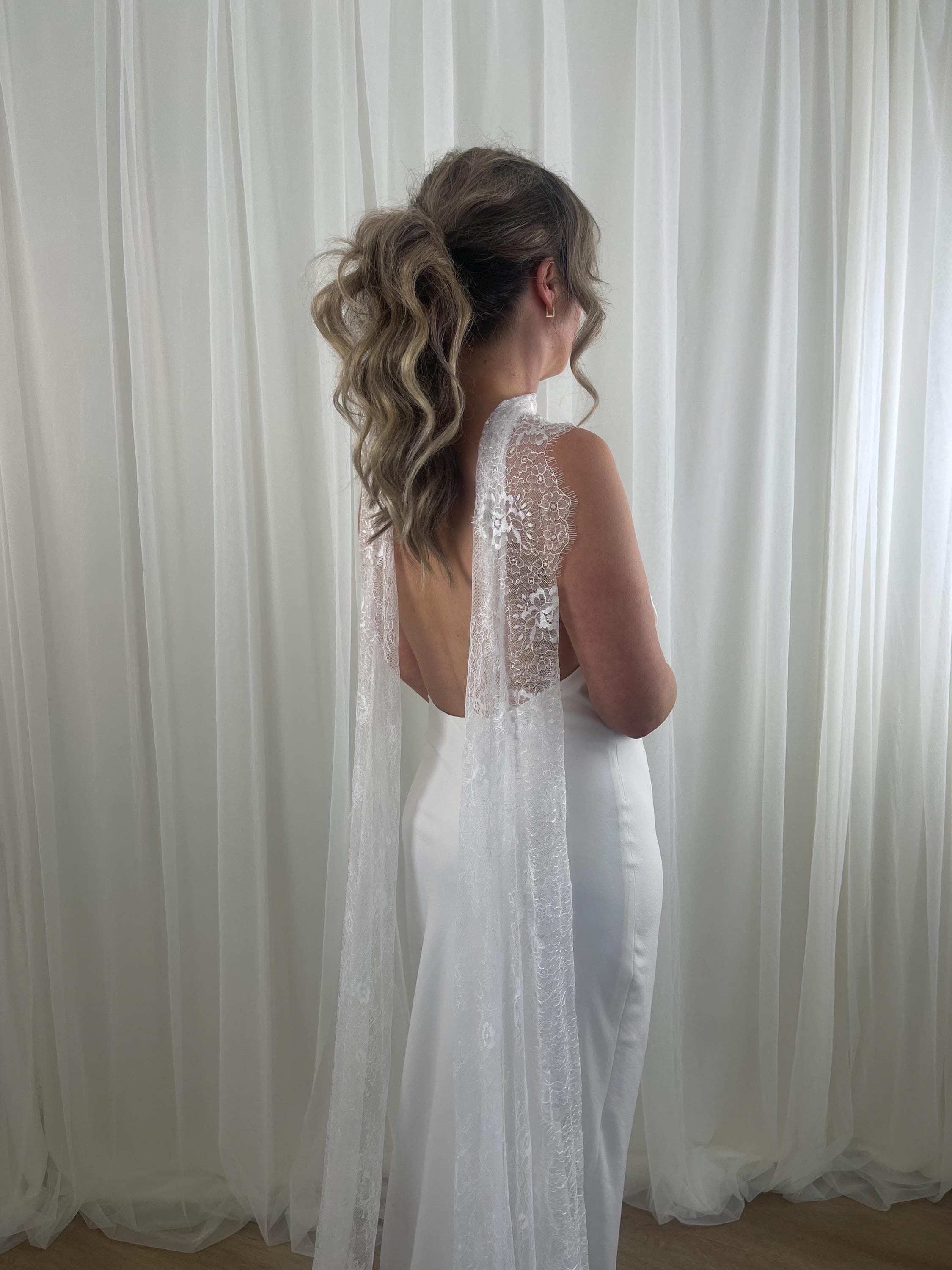 Chantilly Lace Bridal Scarf Lace Neck Tie Long Lace Scarf Veil Neck...