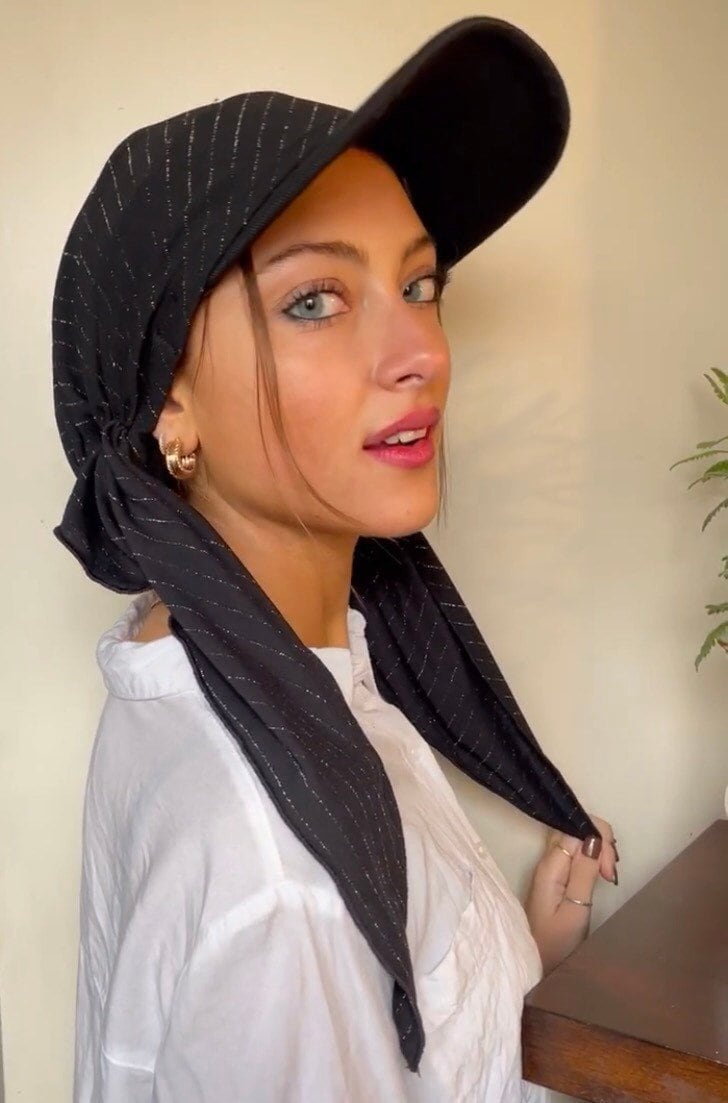 Beautiful Sun Visor Headscarf | Black Silver Sparkle Pre Tied Scarf...