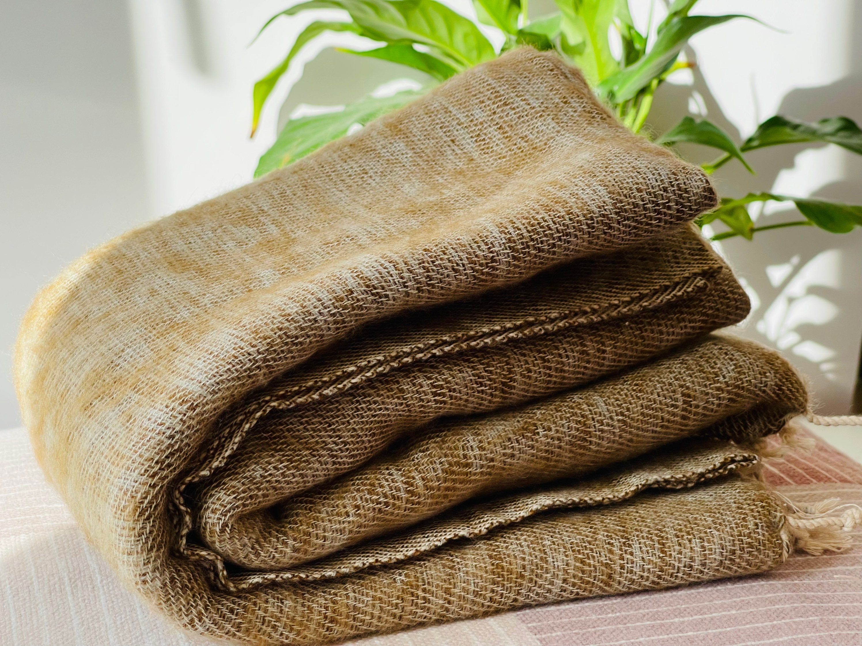 -Yak wool blanket/ shawl is soft, and unique. Cosy, light and warm. Hand-loomed ethical luxury yak w...
