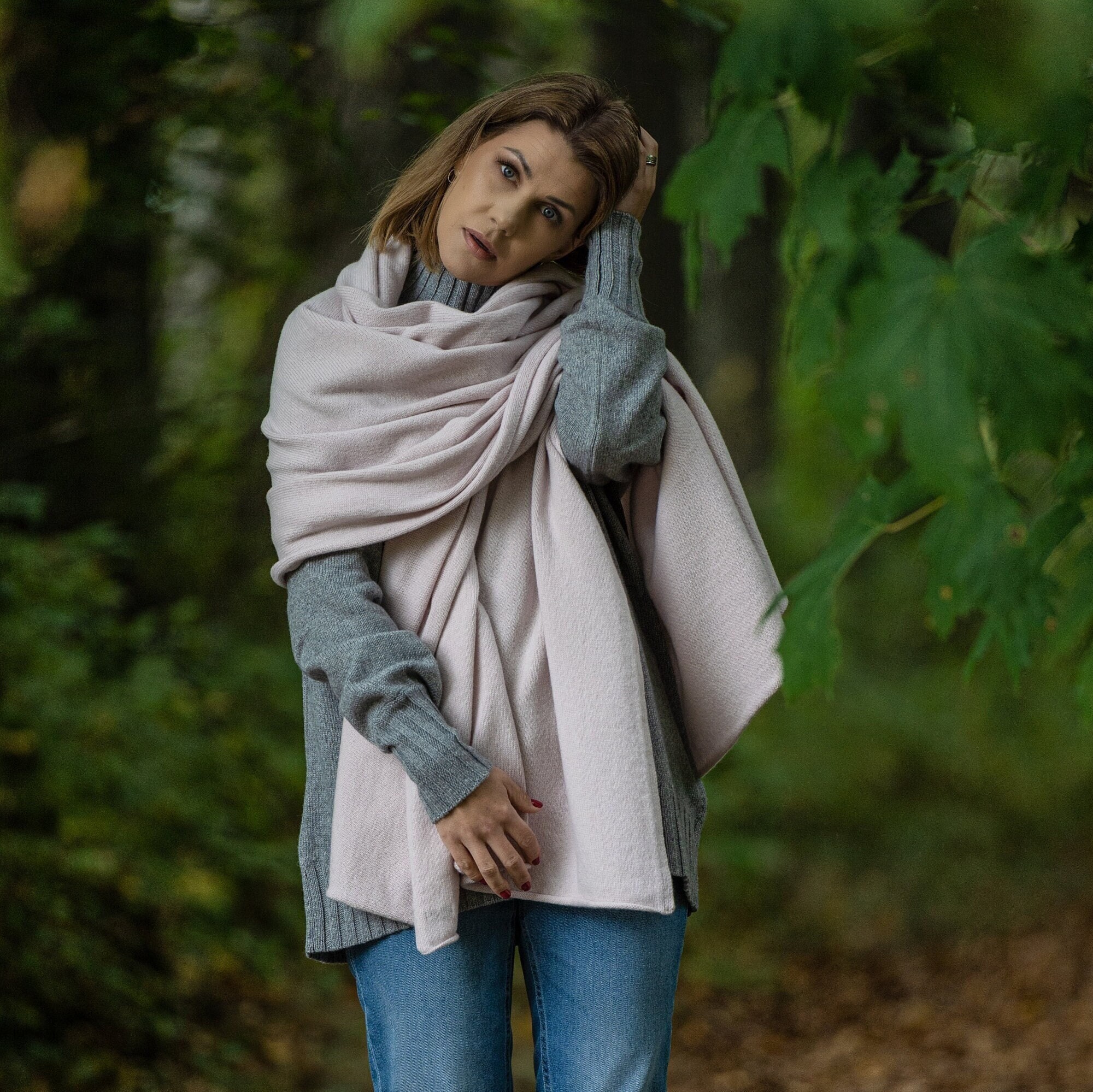 This powder pink wool scarf is made from the softest cashmere and merino wool blend. Extremely long ...