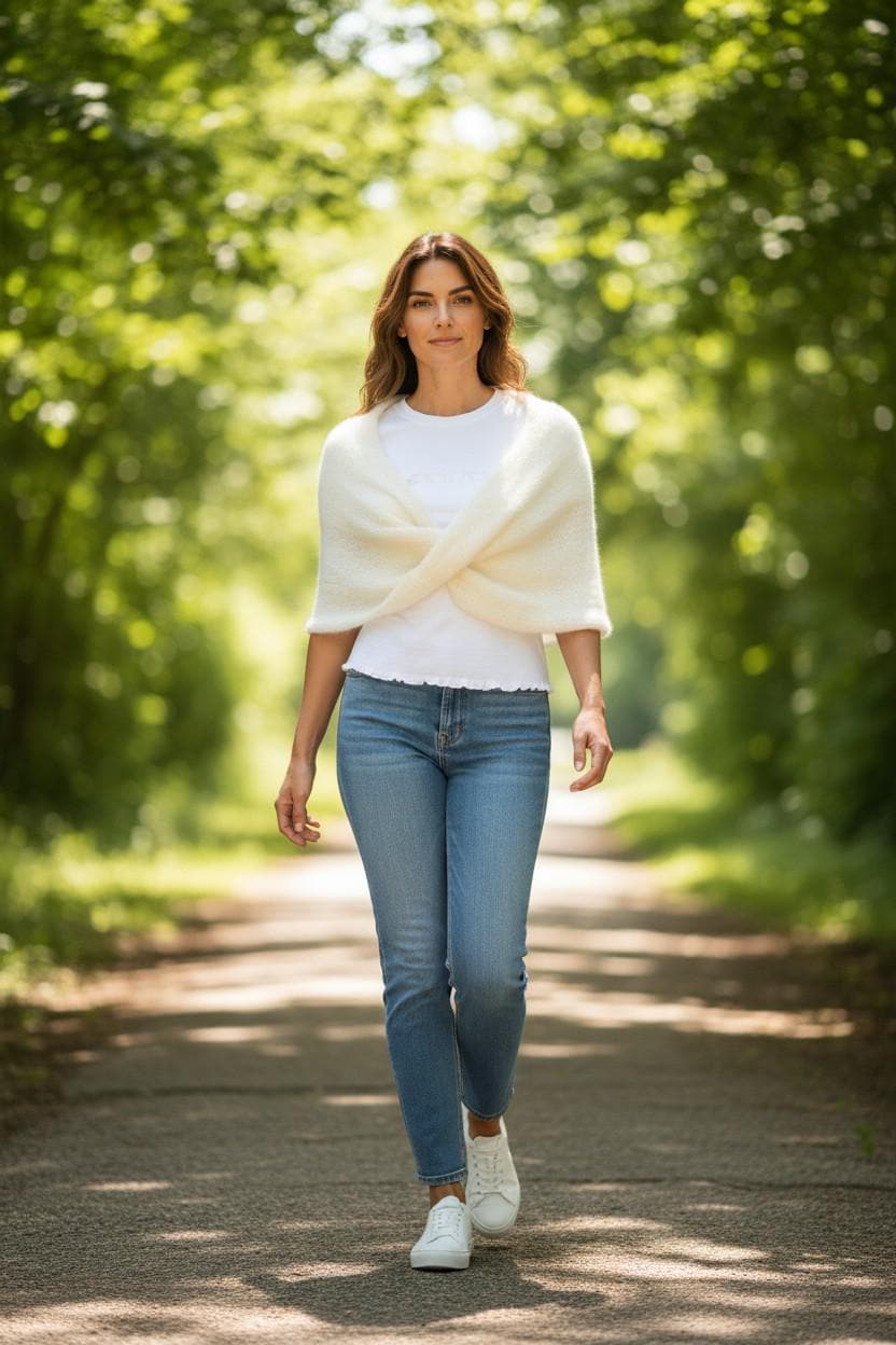 The Latte shawl features a warm, creamy beige color reminiscent of a light coffee with milk. This so...