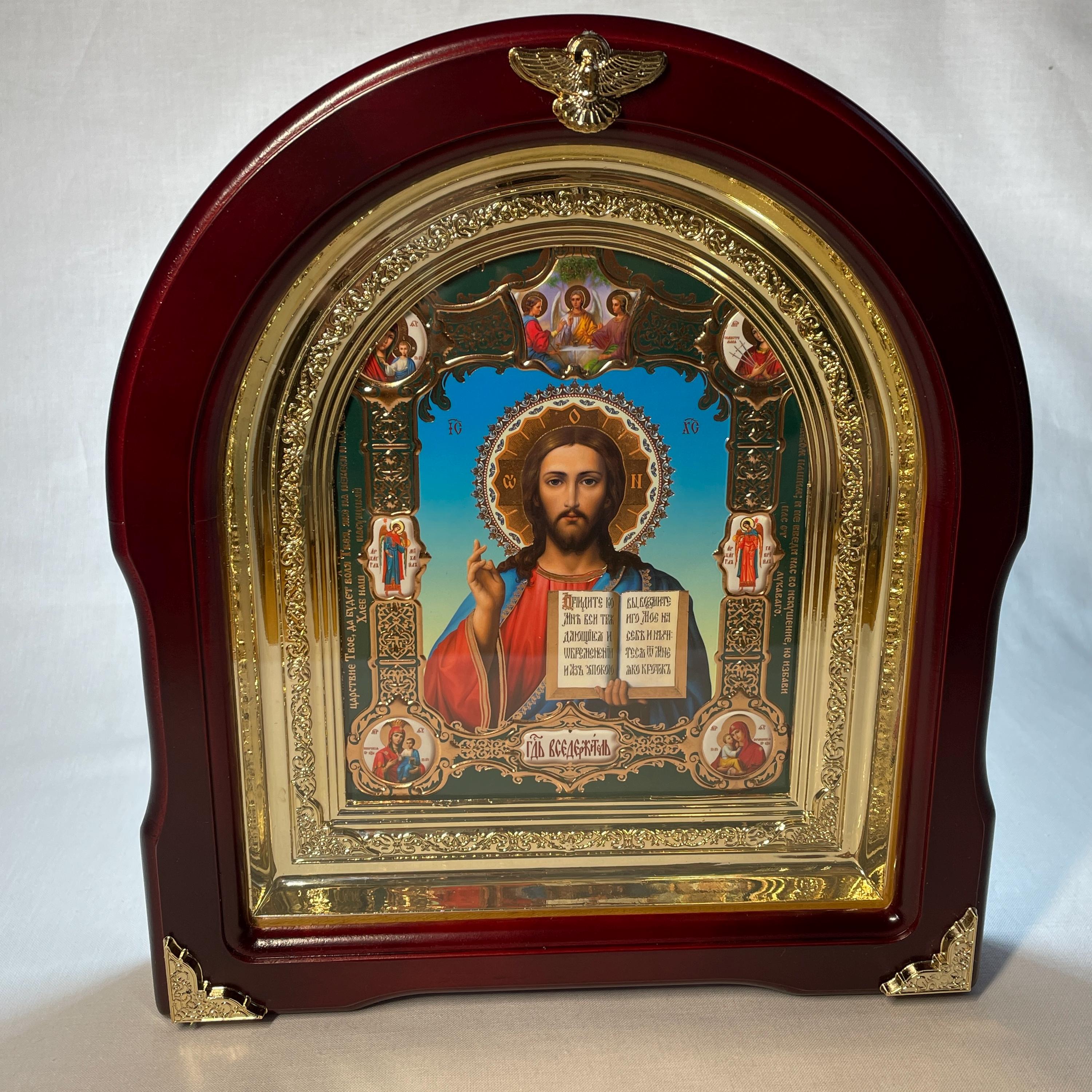 "Icon 3D effect wooden frame arch Jesus Christ Lord Almighty | Arch Wooden icon | Icon under gl...