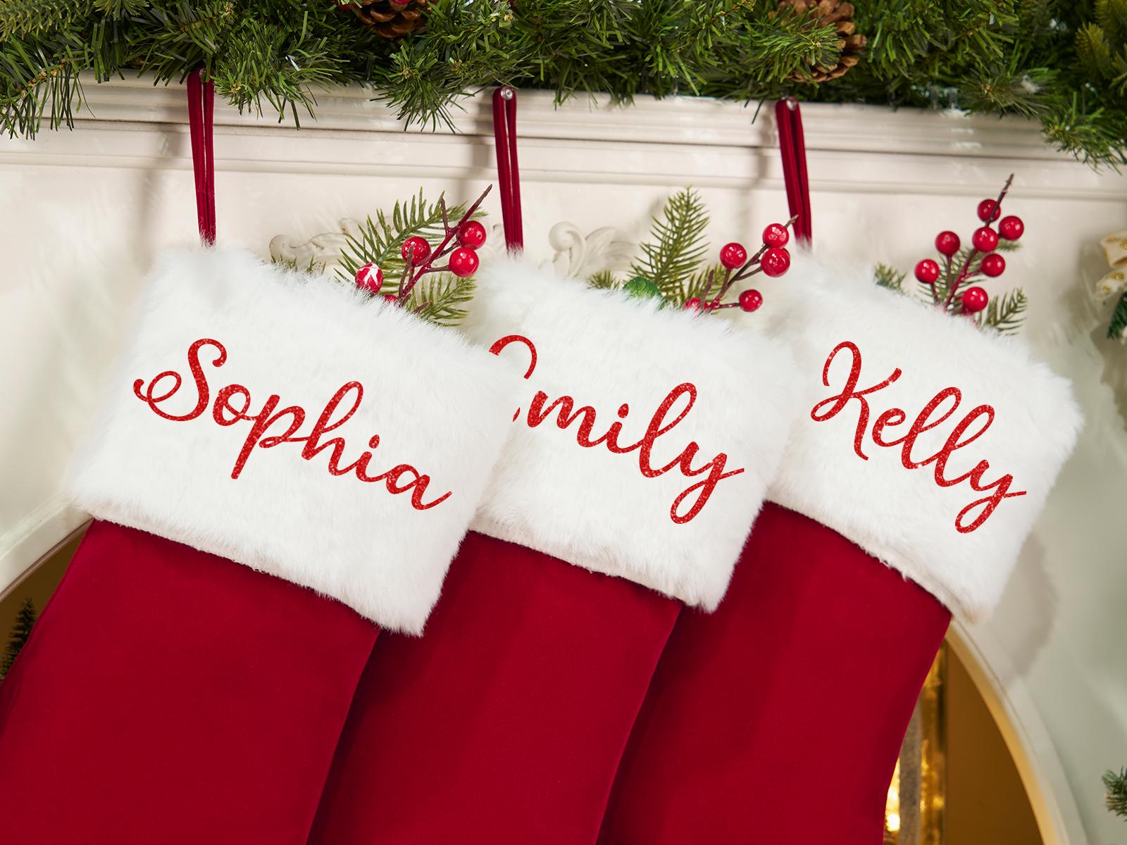 2025 Red Velvet Family Christmas Stockings,Custom Name Christmas St...