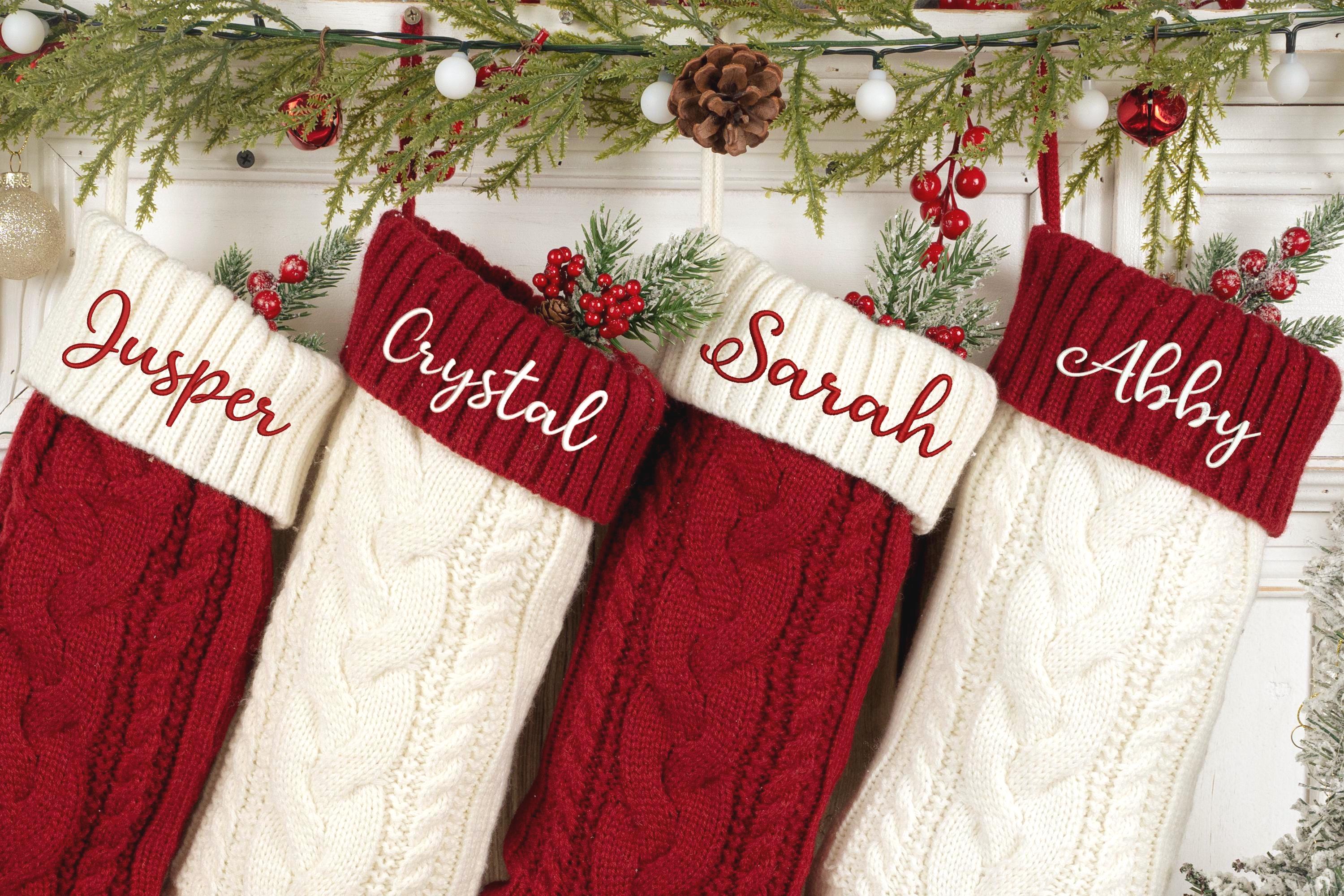 Bring the magic of the holiday season to life with our personalized embroidered knit Christmas stock...