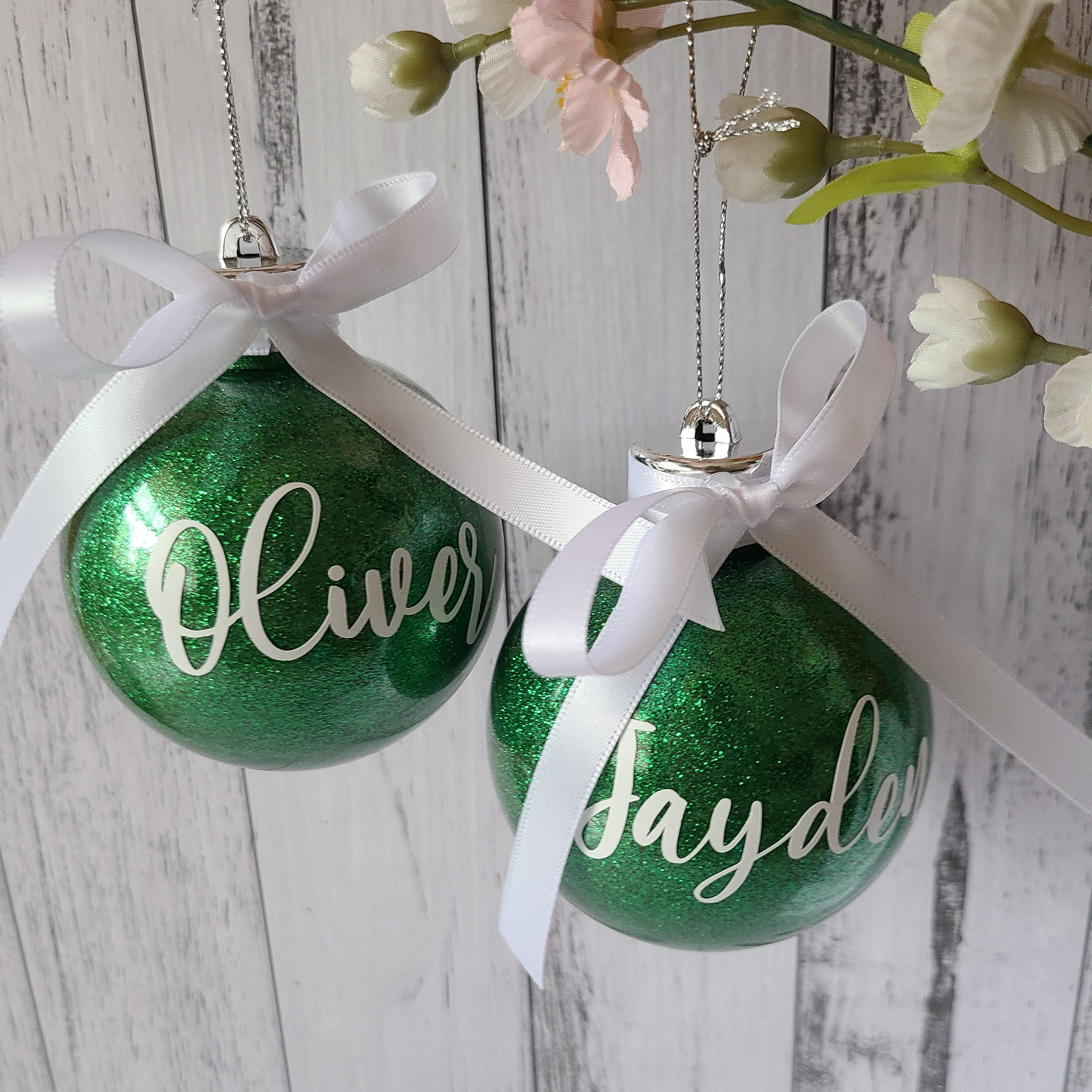 Personalised Christmas Baubles / Christmas Glitter Baubles / Person...