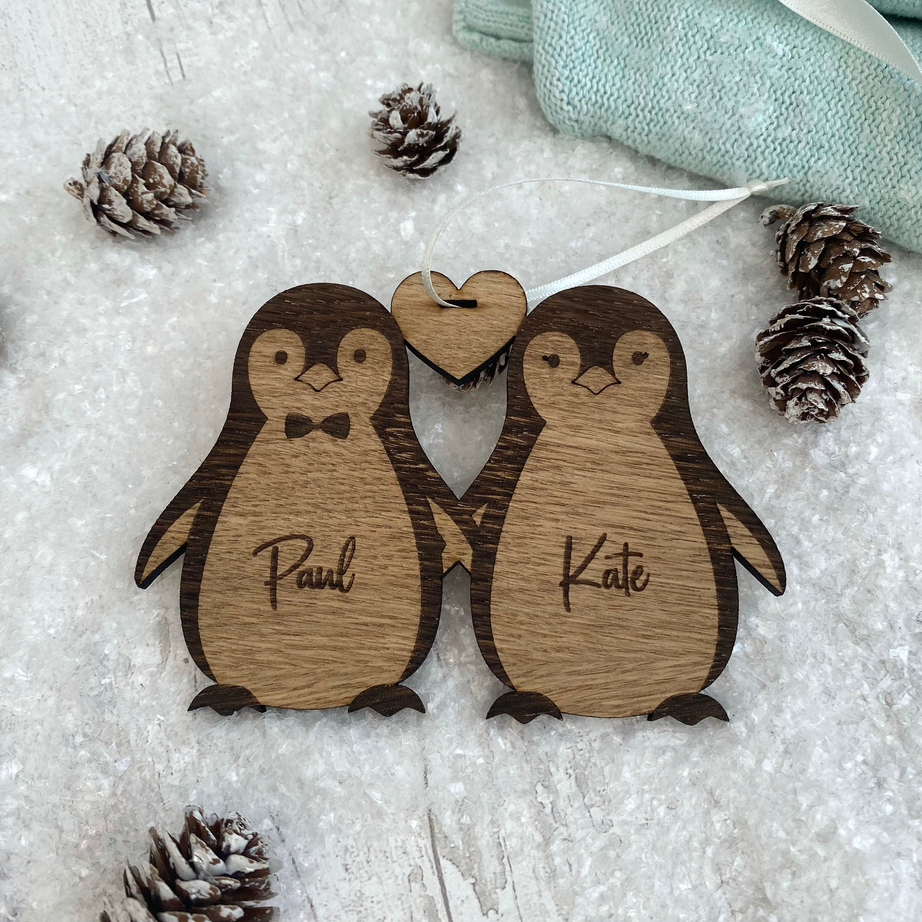 Personalised Christmas Bauble | Penguin Bauble | Couples Christmas ...