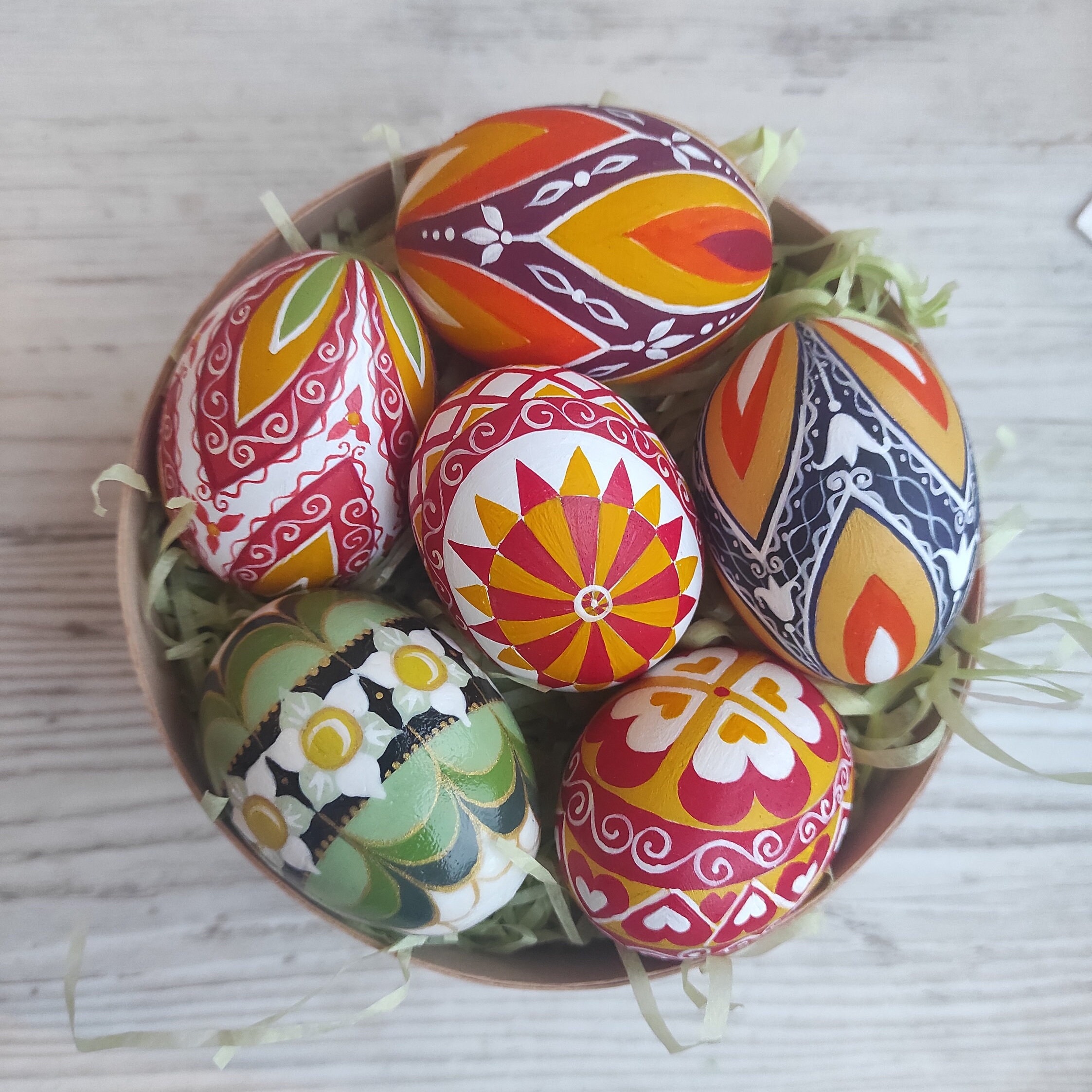 Set of traditional Easter eggs includes 6 embroidered eggs that are called Pysanky eggs in Ukraine. ...