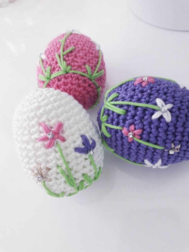Ready to ship. Beautiful 3 pieces crochet Easter eggs in three color - pink ,violet and white. Handm...