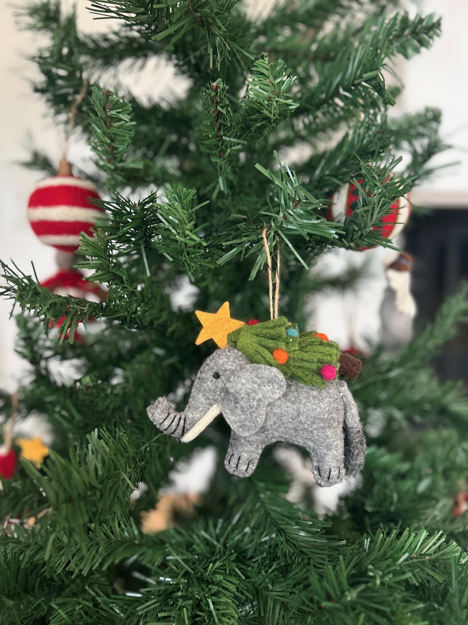 Elephant ornament with Christmas tree | Felt decoration | Winter | ...