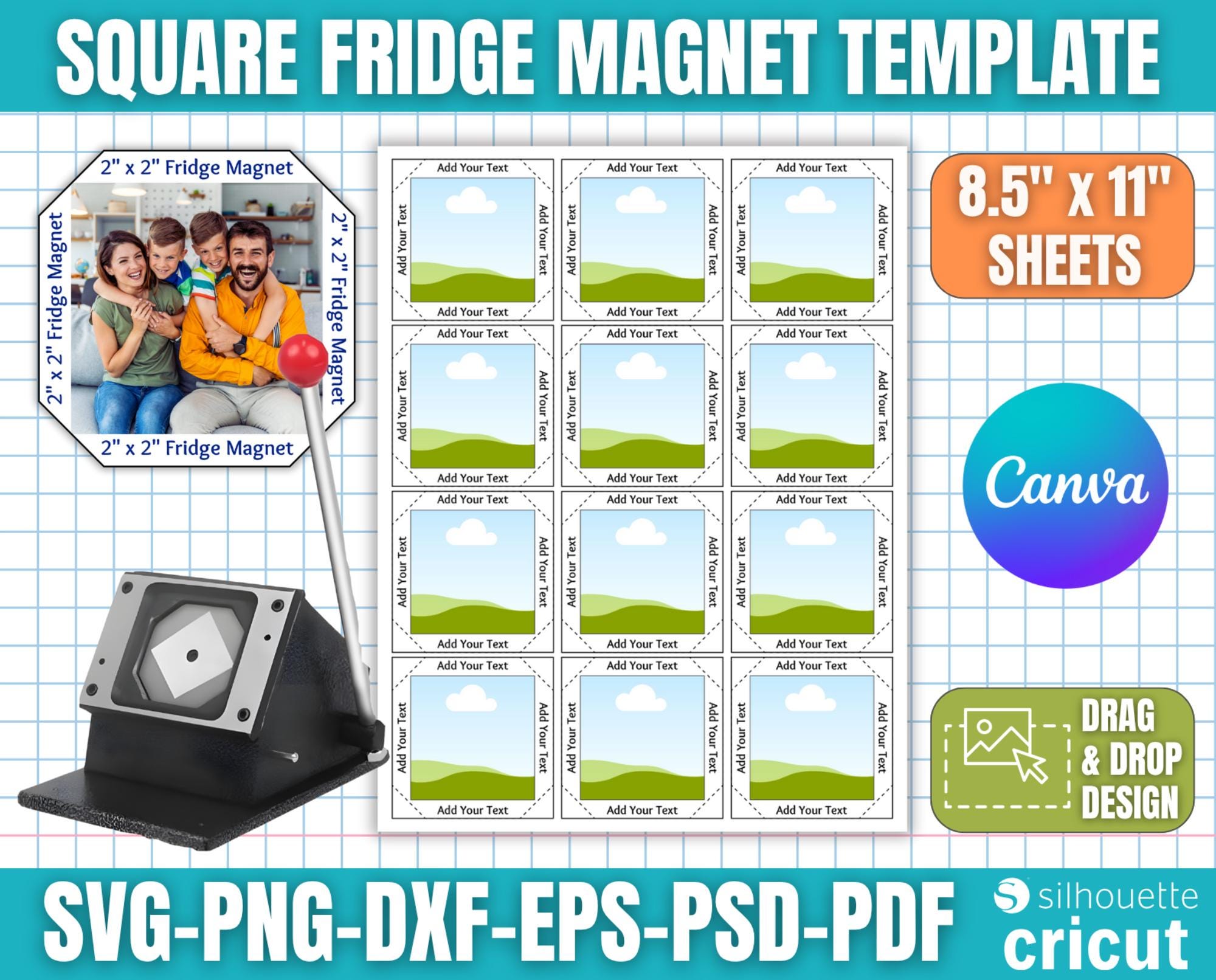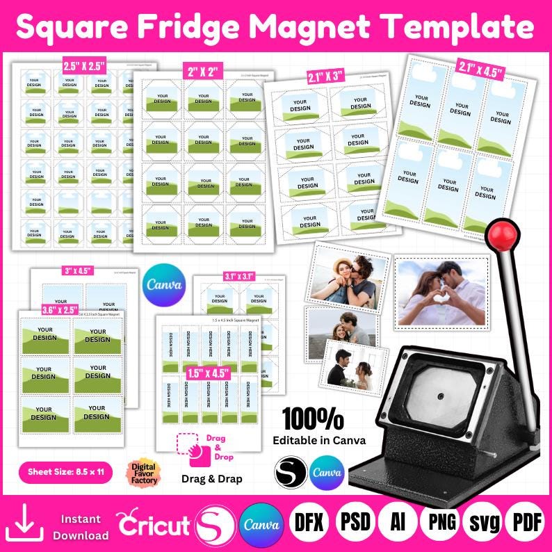"2x2 Square Fridge Magnet Template, Photo Magnet Template, Magnet Maker Template, Magnet Machin...