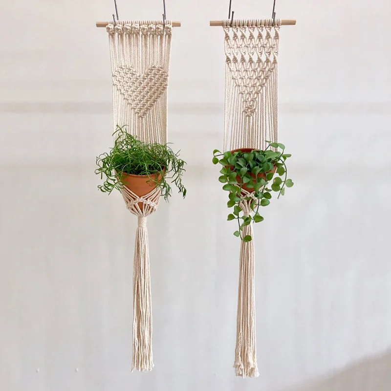 Square Jute Crochet hanging basket for fall | hanging basket for dr...