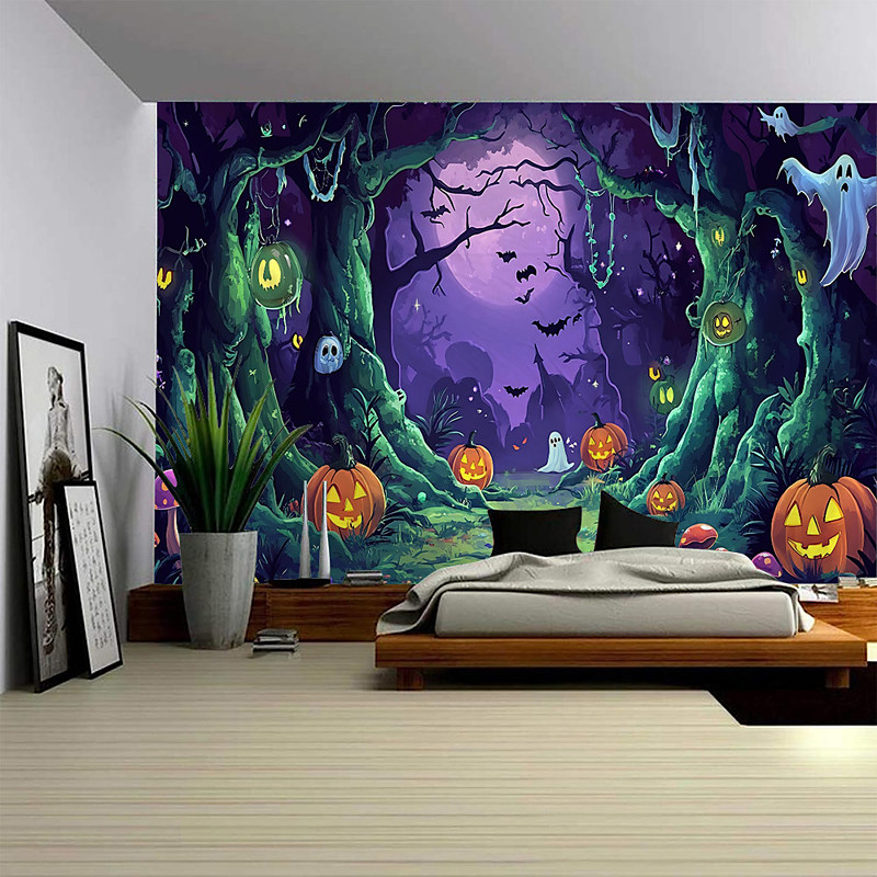 Decorations Tapestry Jack O Lantern Pumpkin Decor Wall Art Large Ha...