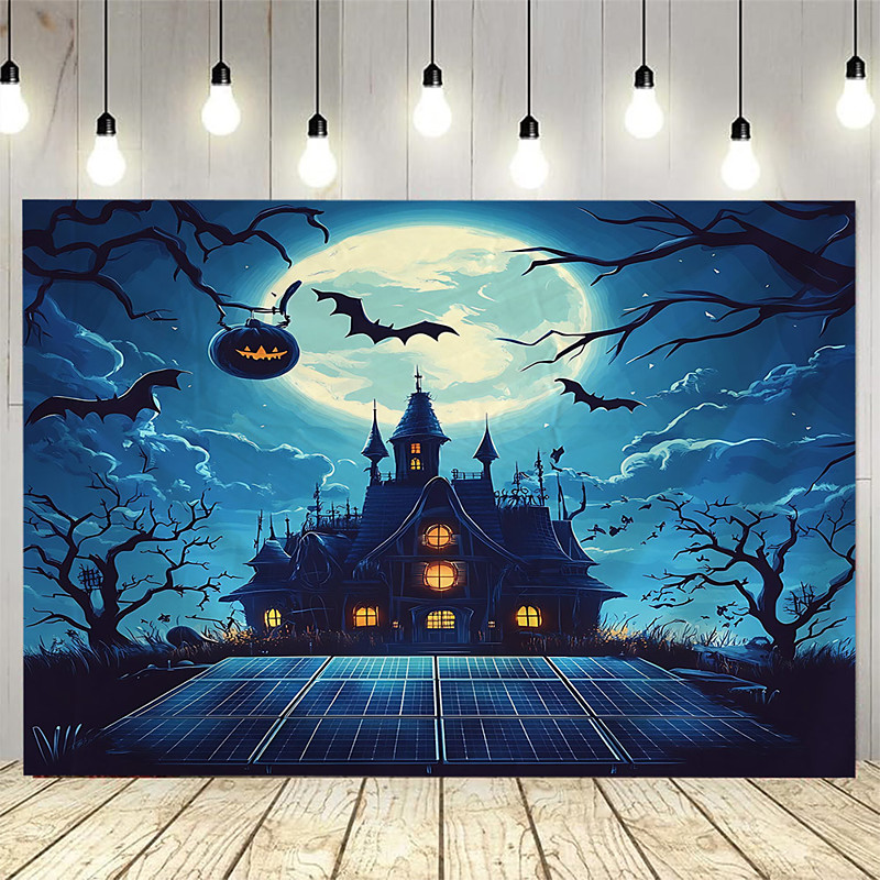 Halloween Photograph Backdrop Tapestry, Pumpkin Lantern, Bat, Full ...