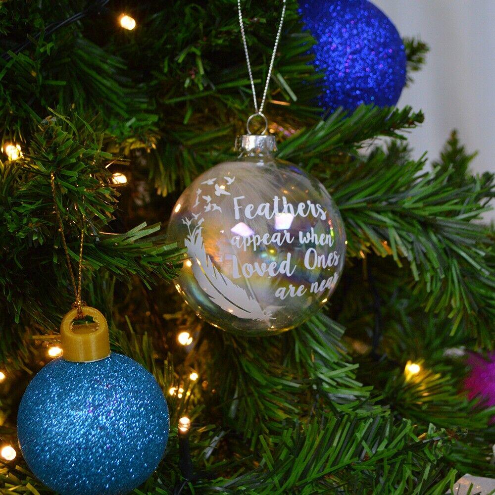 Handmade Christmas Bauble 'Feathers Appear When Loved Ones Are Near'. Glass 8cm Diameter Any questio...