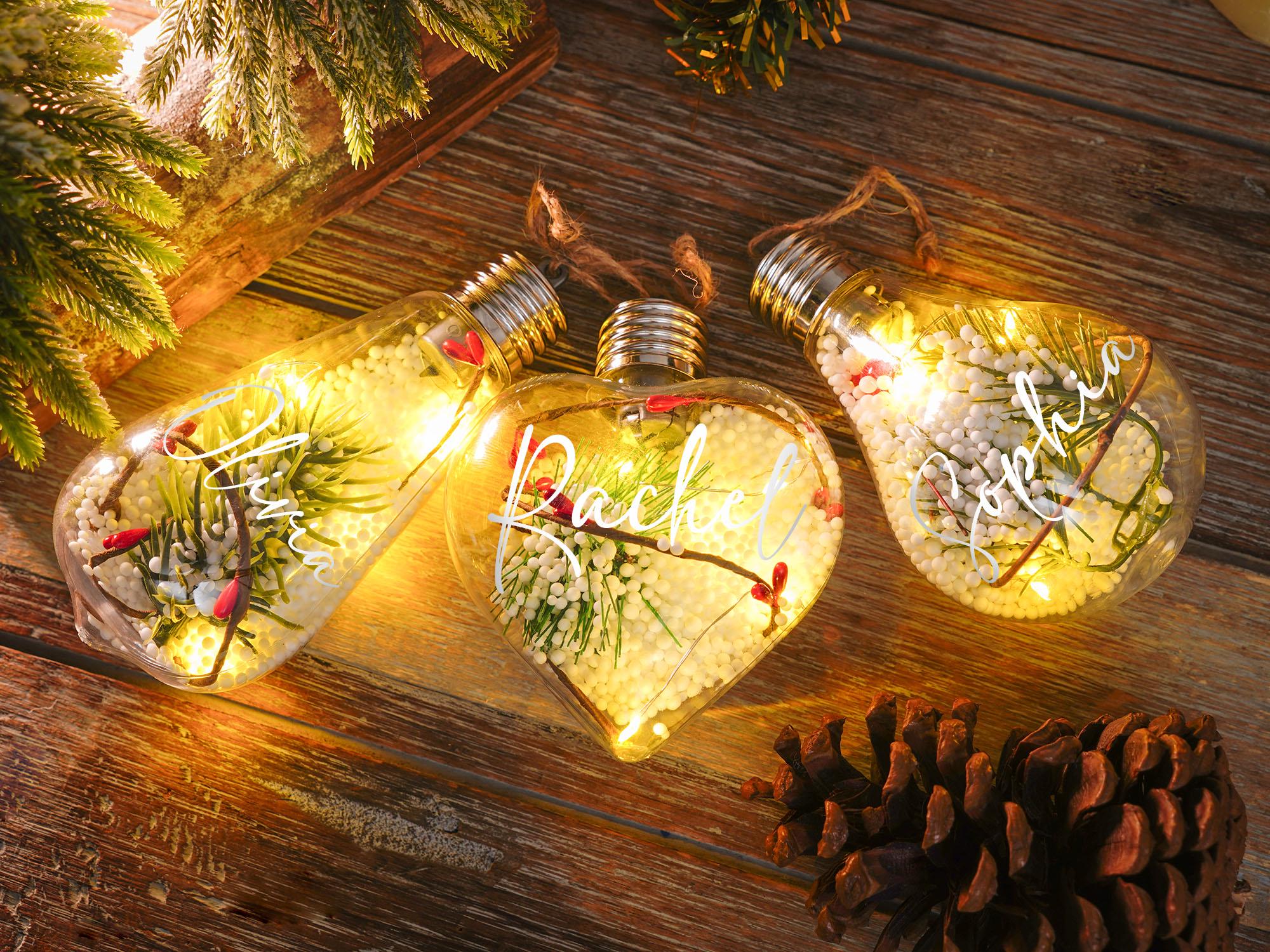Custom Name Christmas Ornament,Christmas Light Bulb with LED,Merry ...