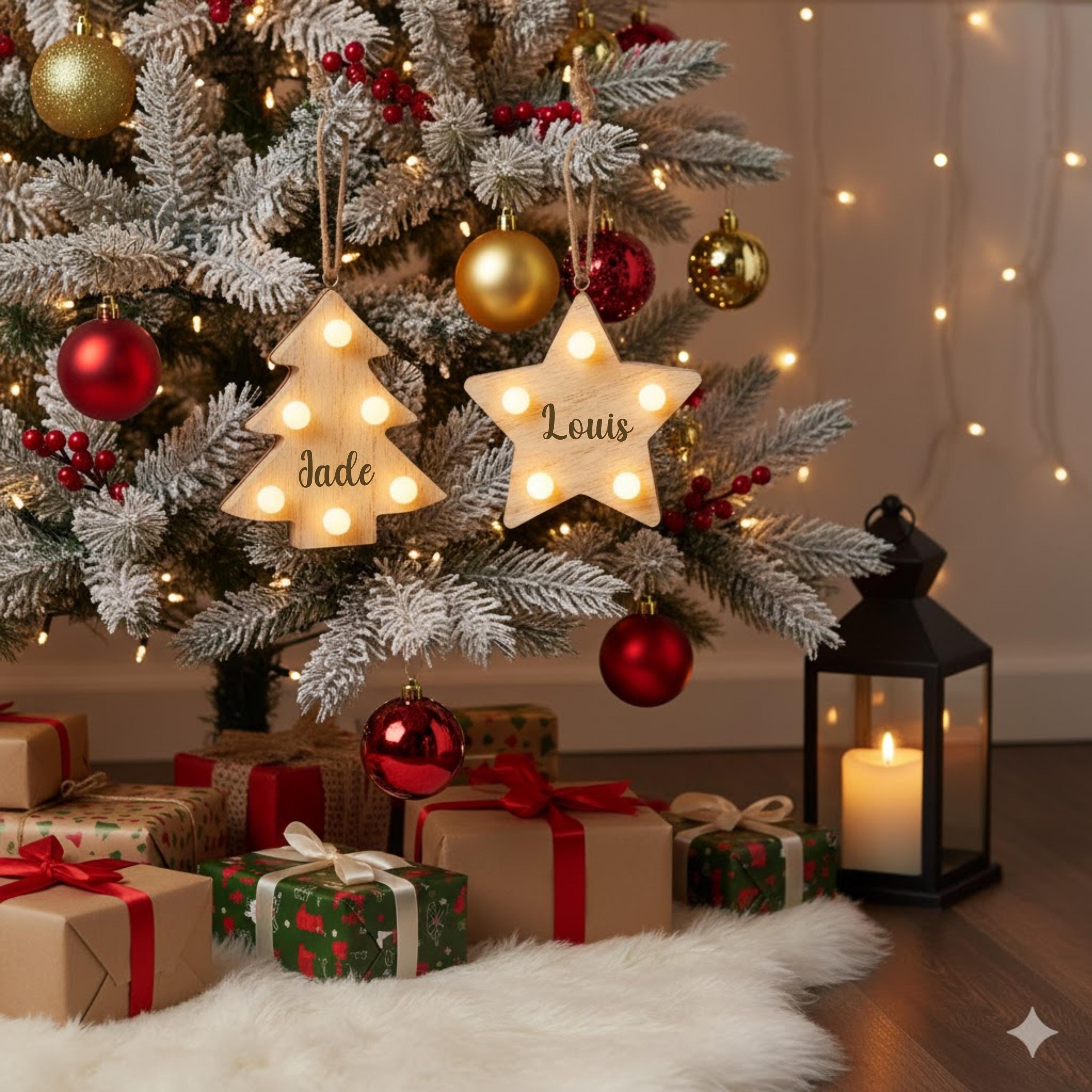 "Personalized Light-Up Christmas Bauble - Tree & Star, Christmas Tree Decoration Add a touc...