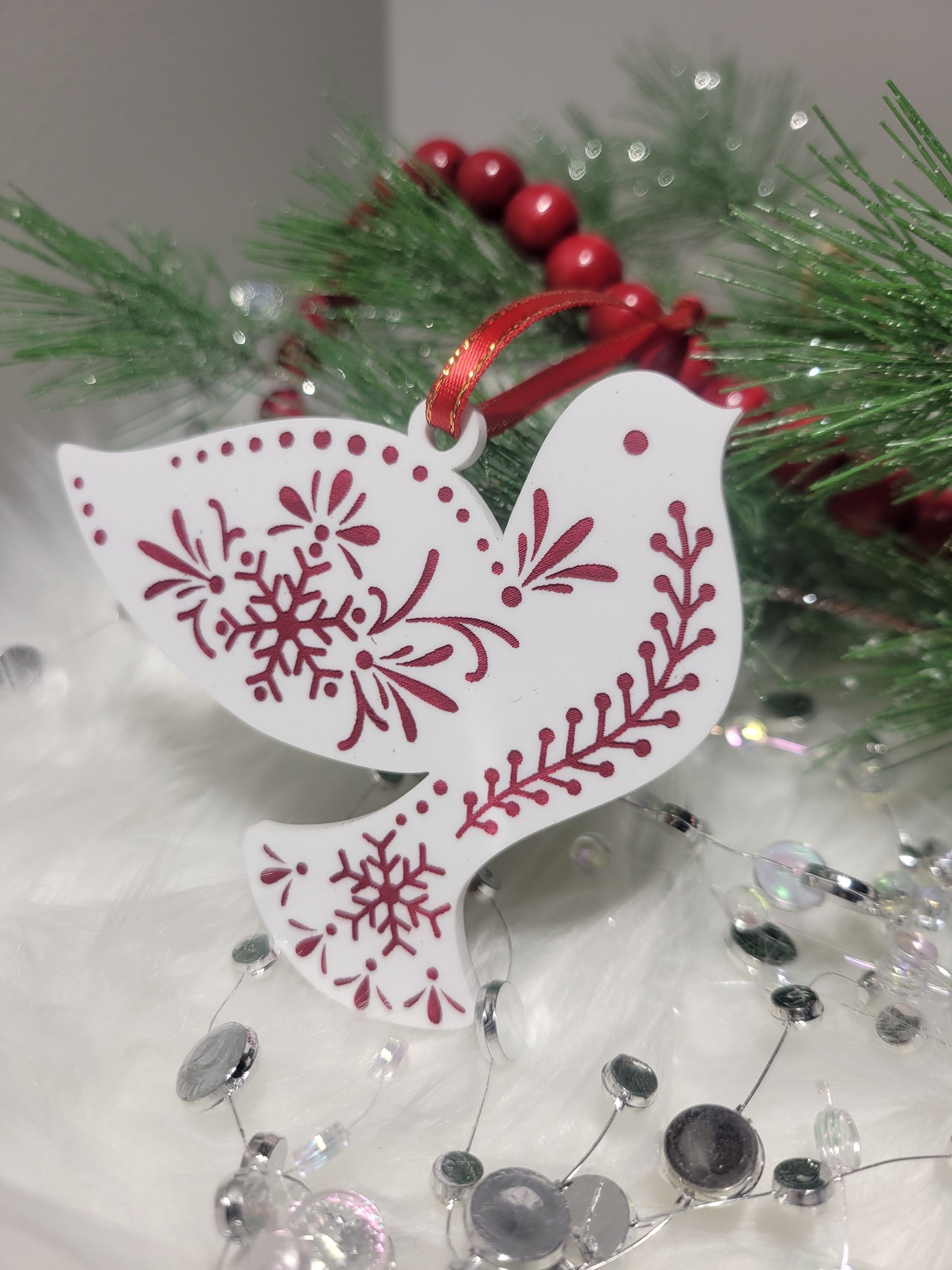 Introducing our enchanting Scandinavian-inspired Acrylic Dove ️ Christmas Tree Ornament! Hand...