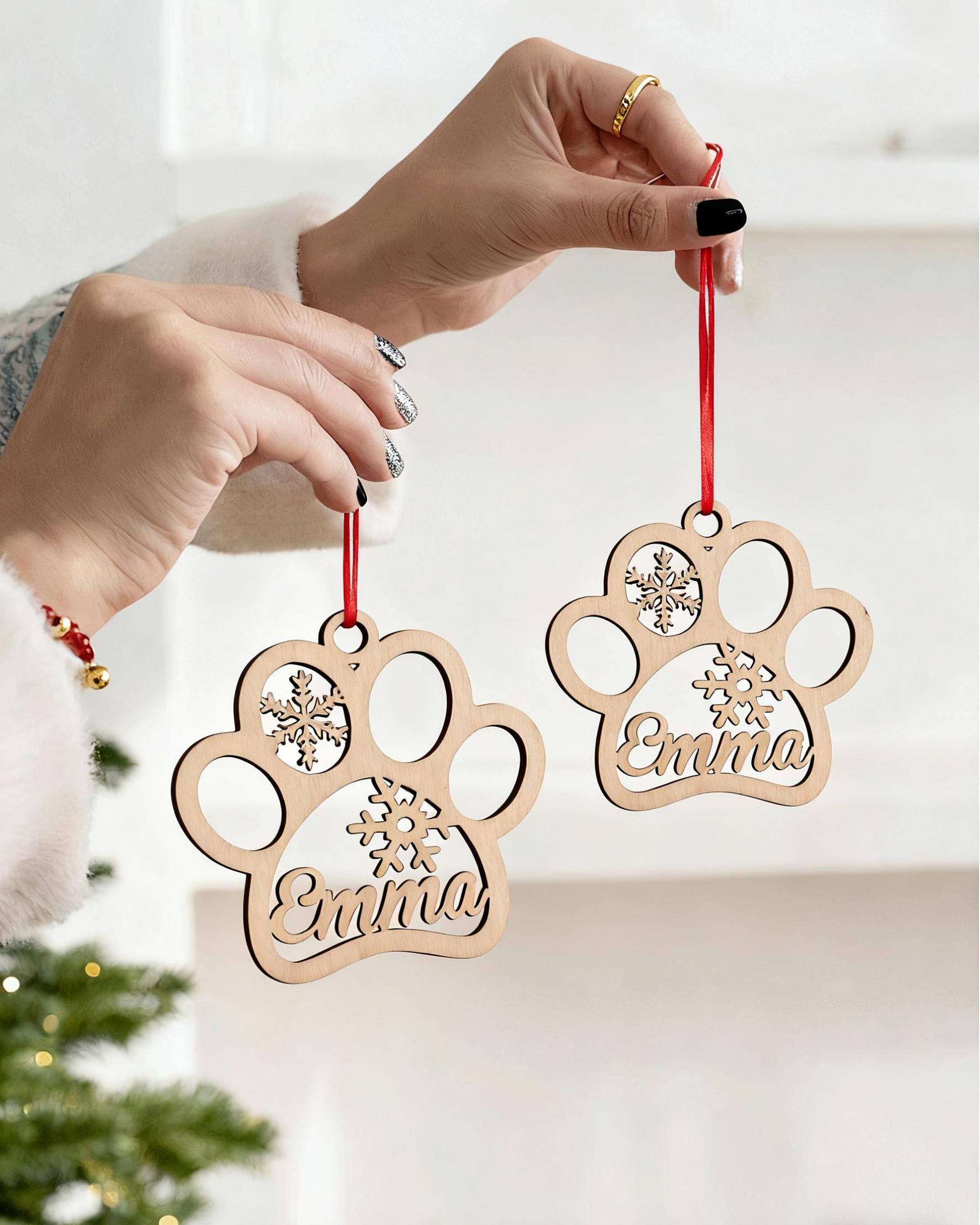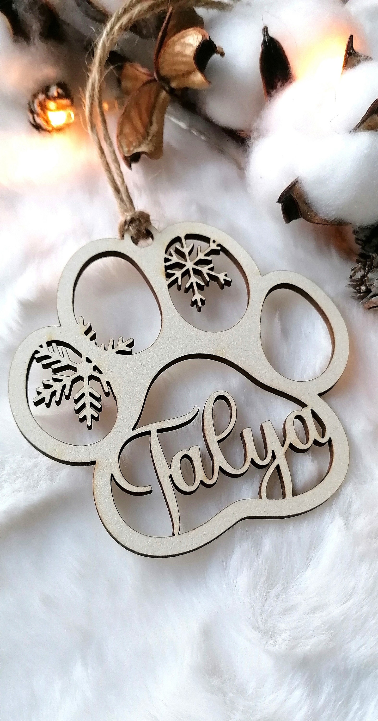 "Personalized Wooden Paw Print Ornament - Customizable with Name, Christmas Decoration, and Gif...
