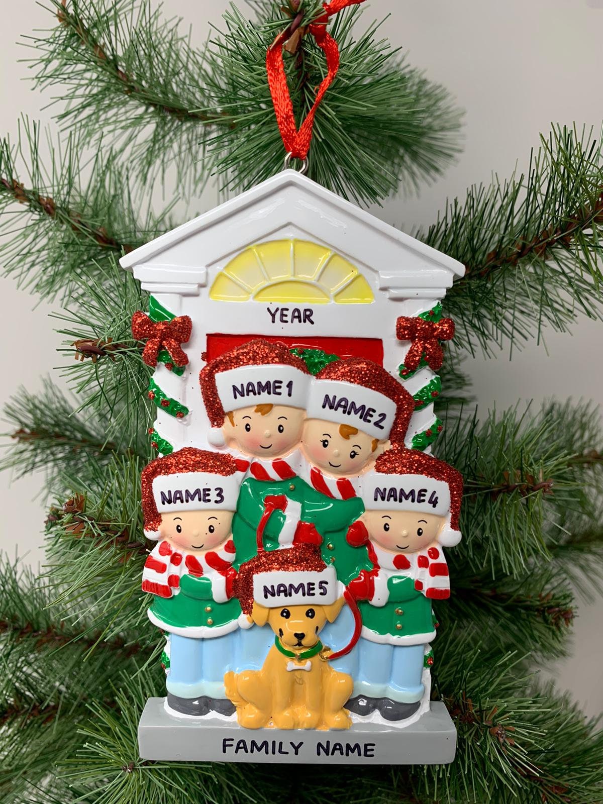 Personalized Family of 4 with Dog Ornament Family Ornament Christma...