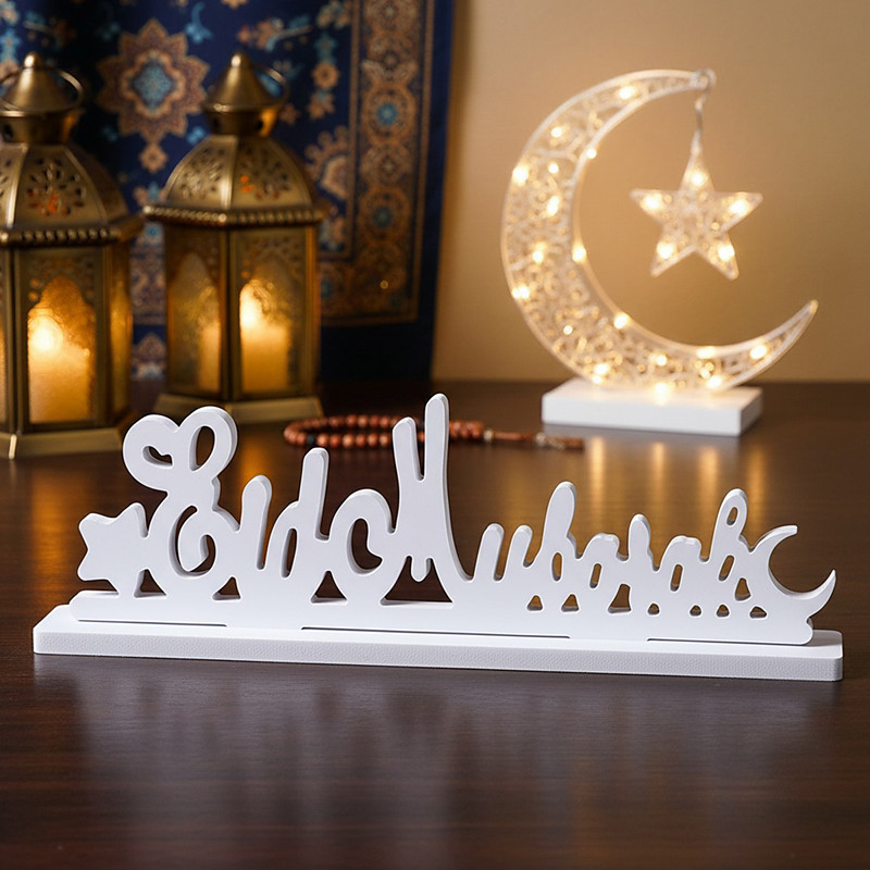 Ramadan Eid White Star Moon Mubarak Letter Decoration – Lette...