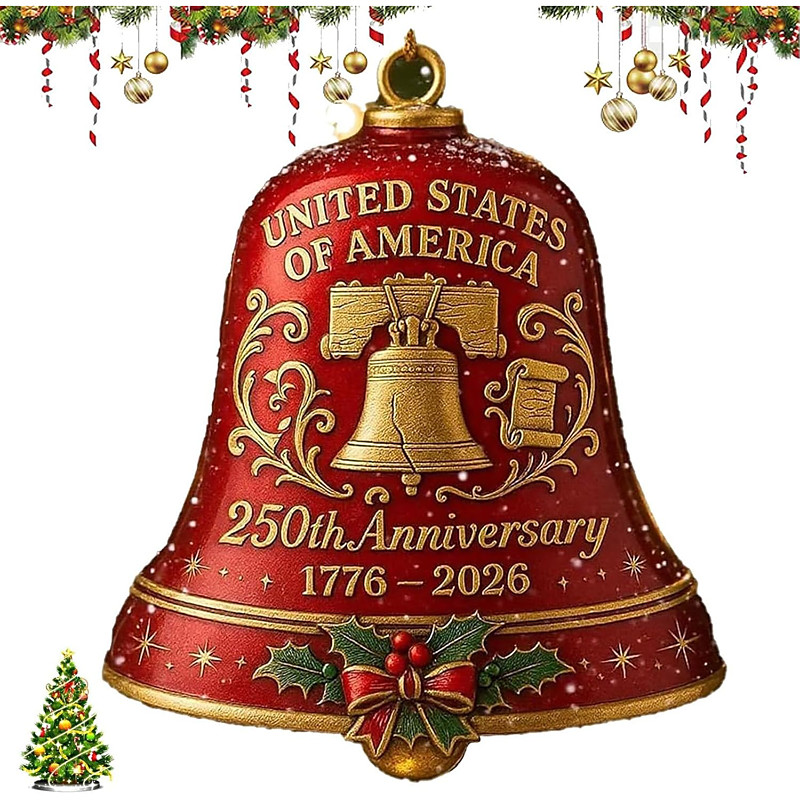 United States 250th Anniversary Christmas Bell Ornament Xmas Gold V...