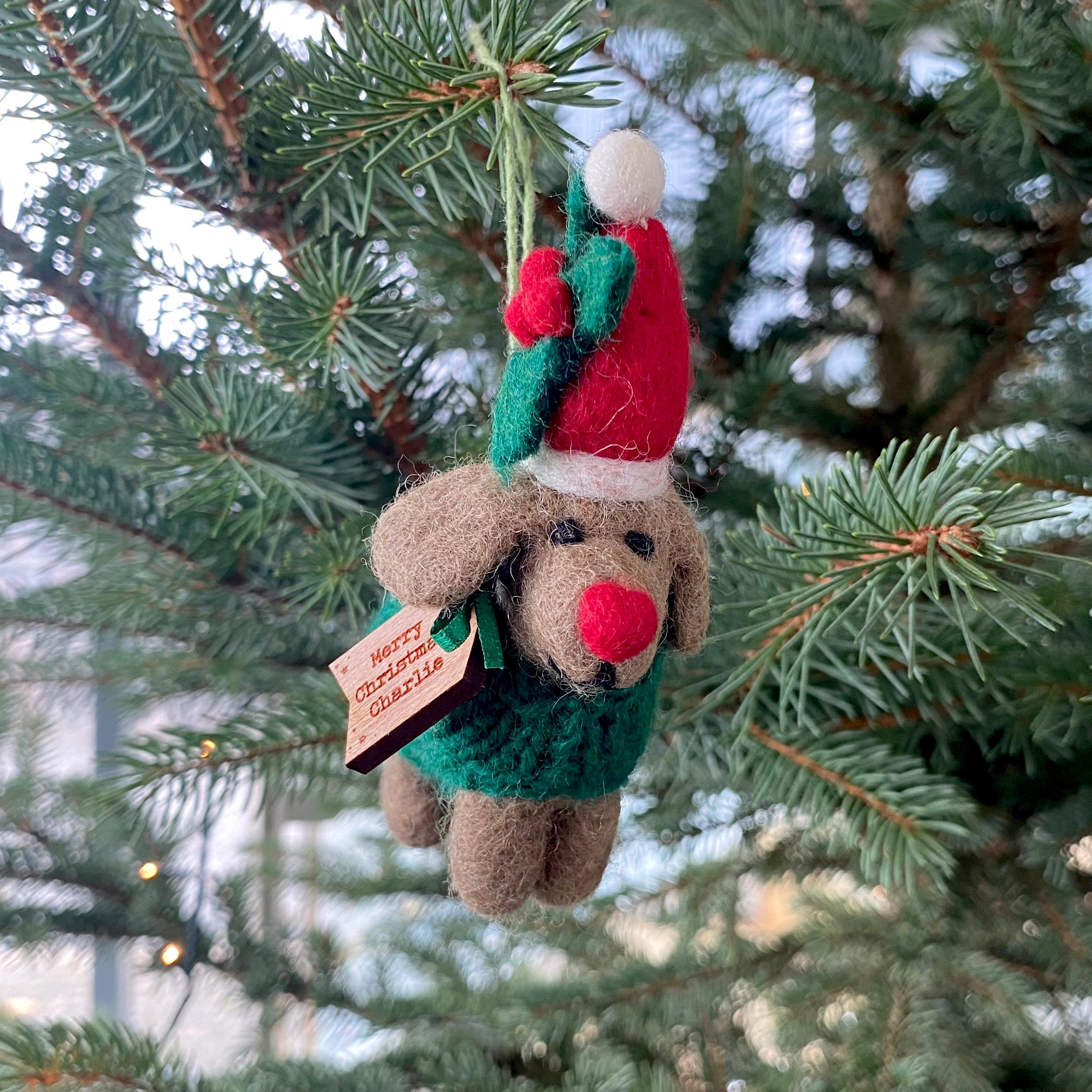 Felt Dachshund Christmas Tree Decoration - Personalised Rudolph Sau...