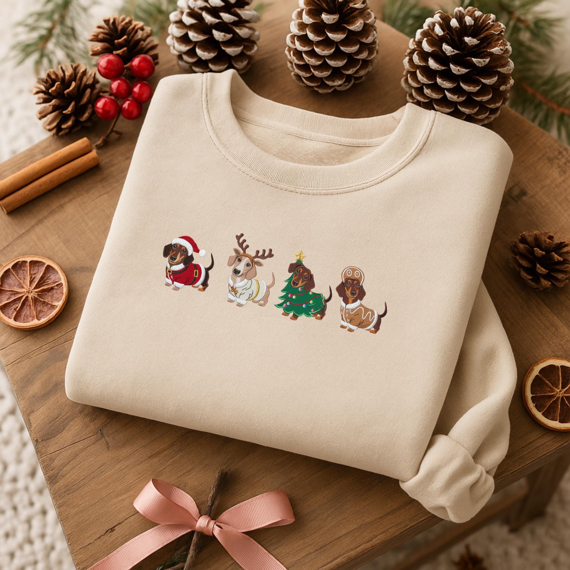Embroidered Dachshund Christmas Sweatshirt, Wiener Dog Holiday Swea...