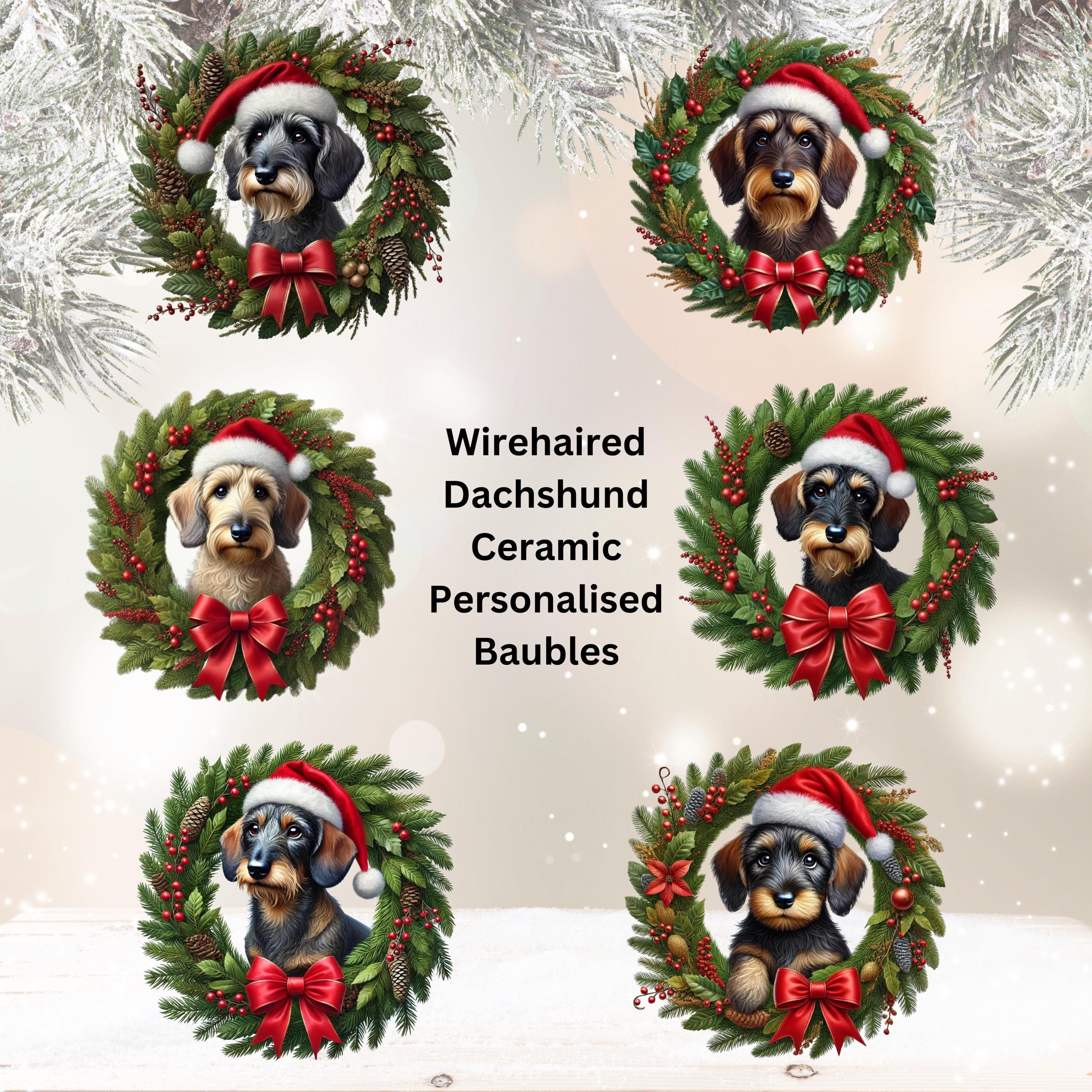 Wirehaired Dachshund Ceramic Bauble, Personalised, Dog Charity, Chr...