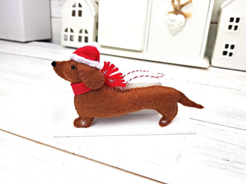 Christmas Dachshund Felt Hanging Decoration, Sausage Dog Ornament, ...