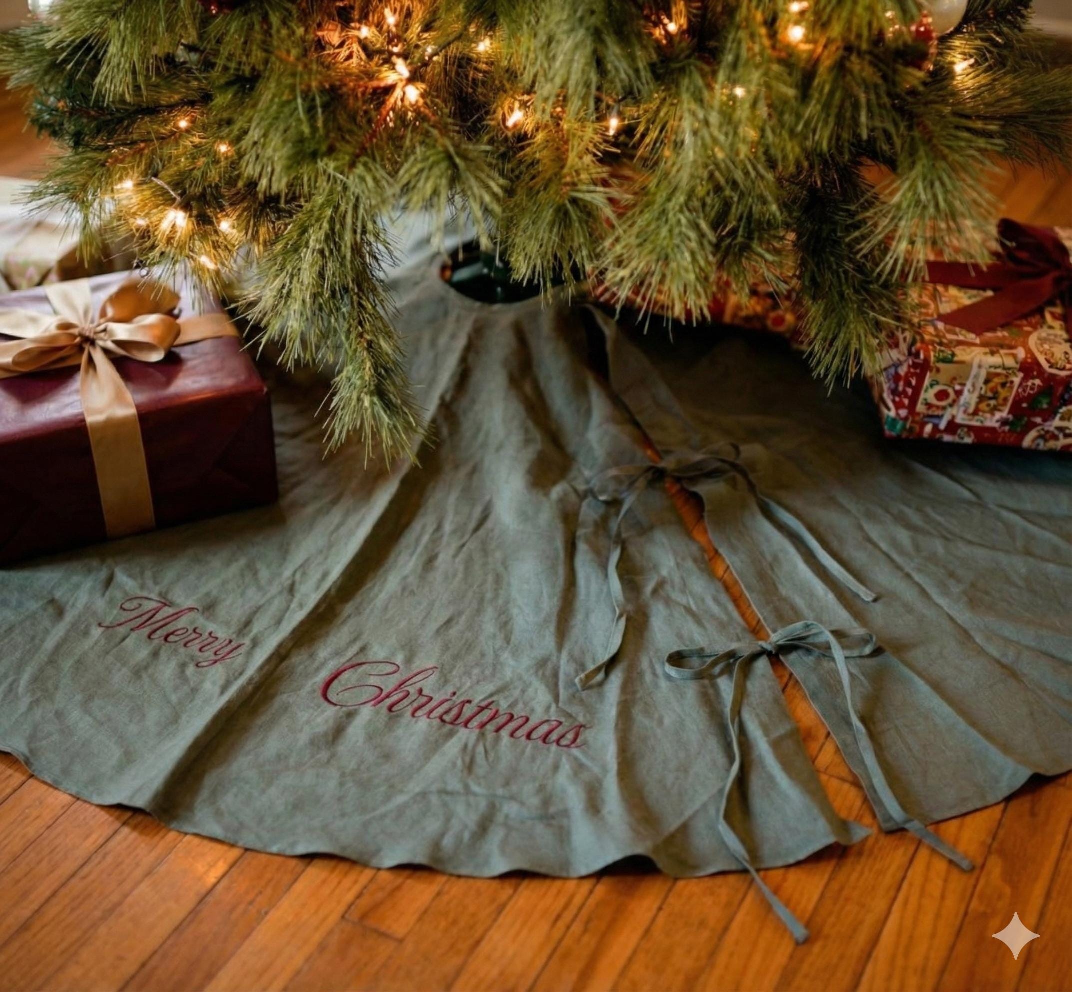 Handmade Personalized tree skirt, Linen Christmas tree skirt, Chris...