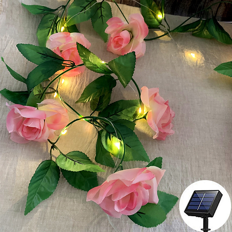 Solar Ivy Leaf Rose Leaf String Lights Outdoor LED Hanging Lights A...