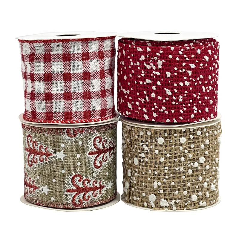 Wholesale Christmas Ribbon Wired Burlap Ribbon Plaid Ribbon for Chr...