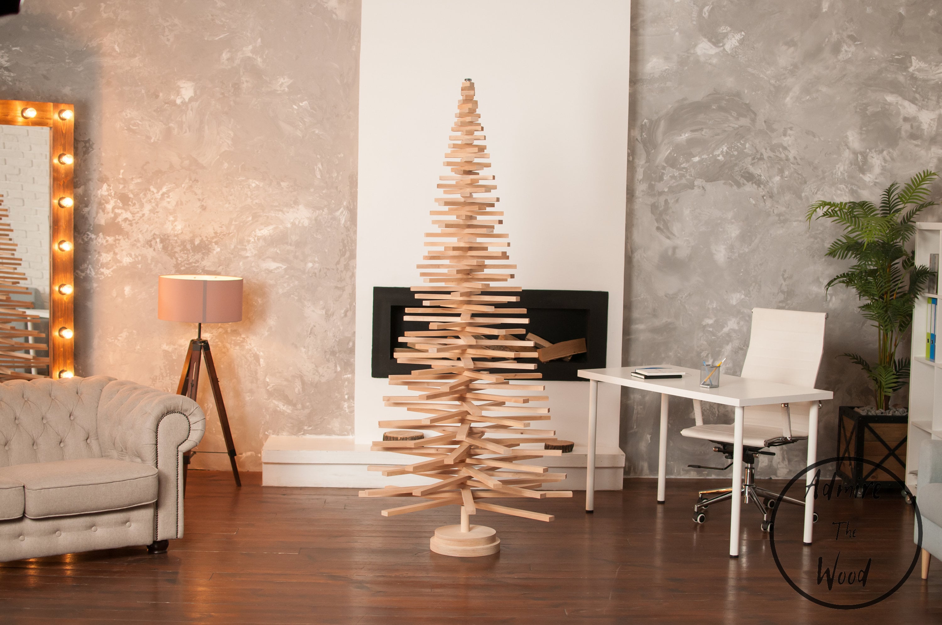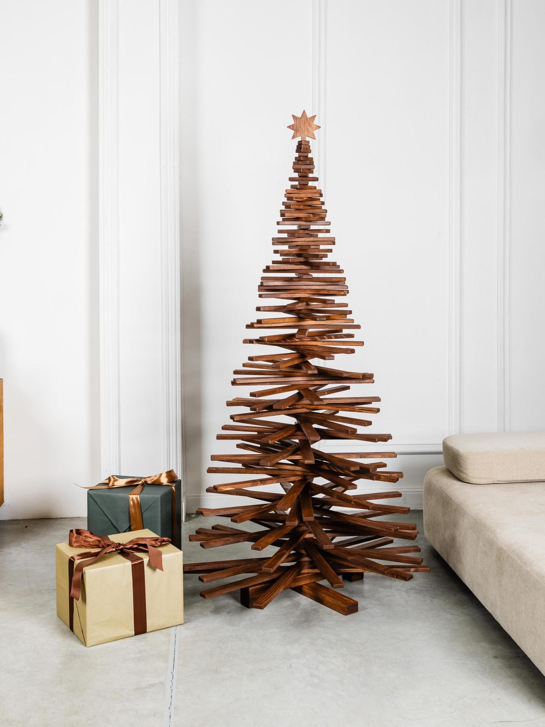 The modern and stylish handmade wooden Christmas tree is easy to assemble and decorate with garland ...