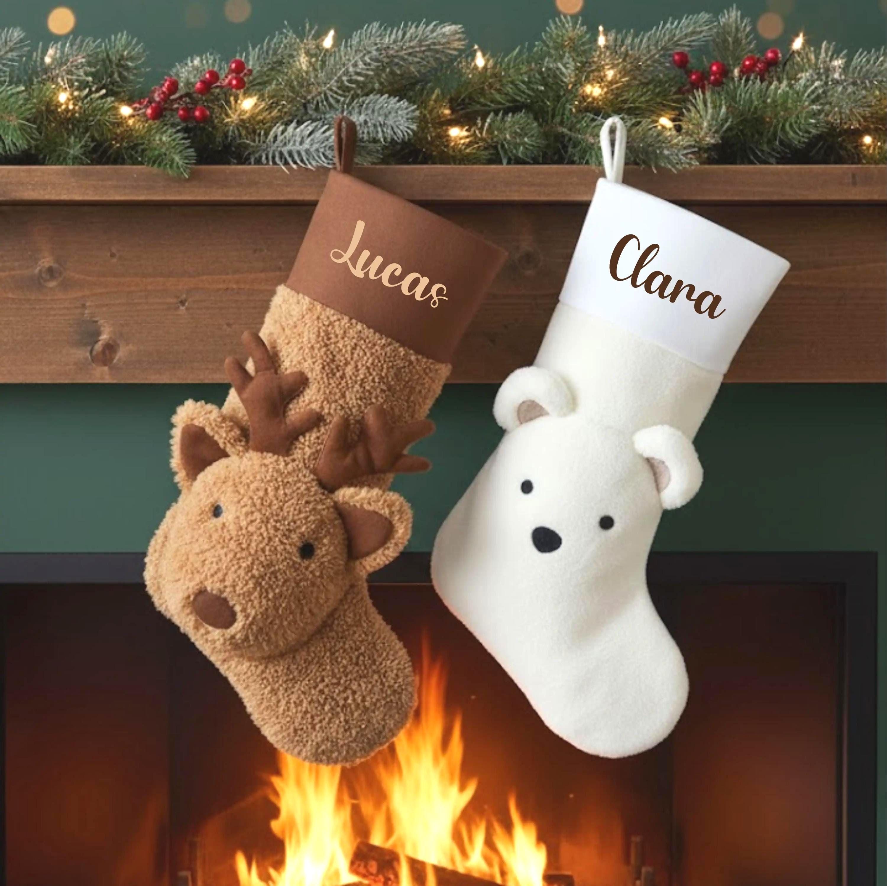Personalized Christmas Stocking - White and Brown Bear with First Name, Advent Calendar Gift, 3D Rei...