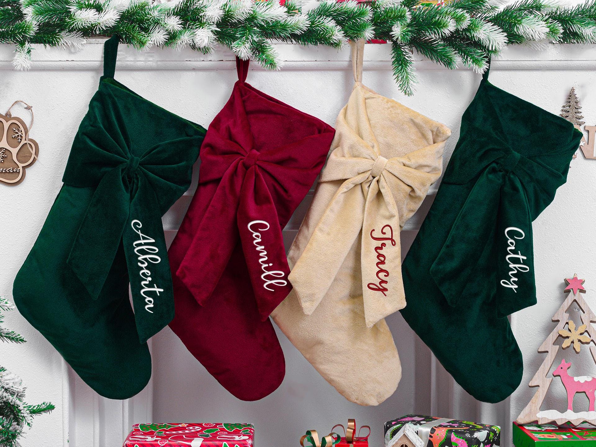 Personalized Bow Christmas Stocking,2025 Velvet Christmas Stocking,...